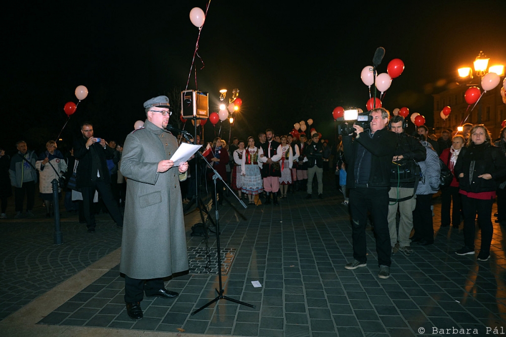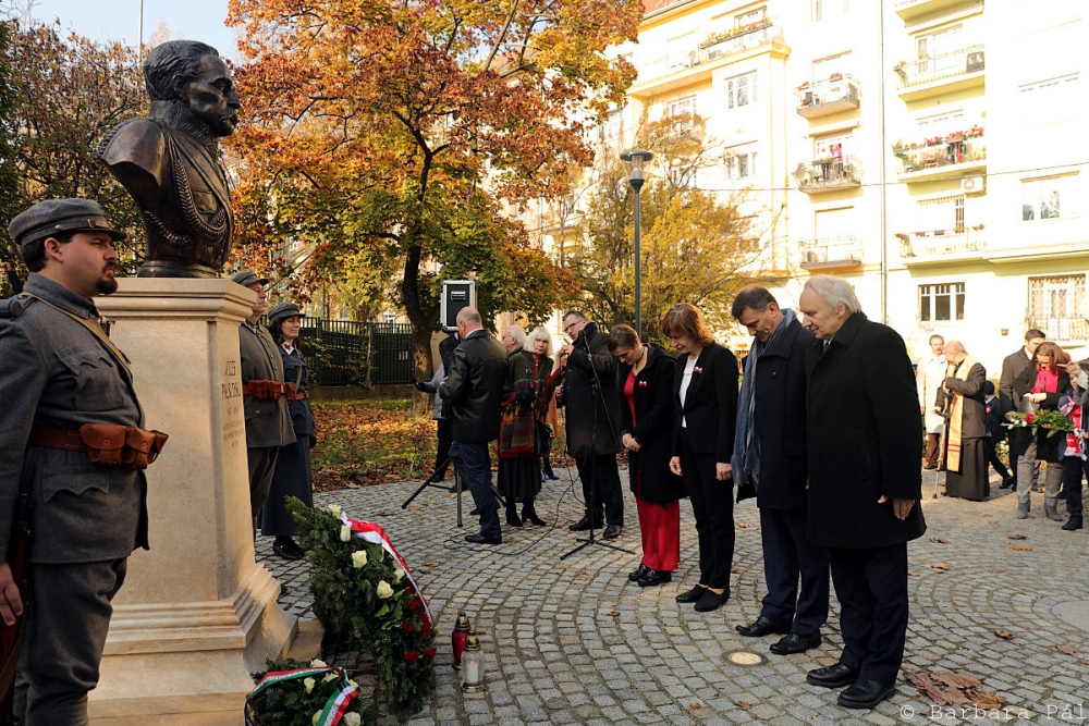 11 listopada uroczystego poświęcenia pomnika dokonał proboszcz Polskiej Parafii Personalnej na Węgrzech ks. Krzysztof Grzelak SChr. Całemu wydarzeniu towarzyszyła Orkiestra Straży Pożarnej ze Szczucina k/ Dąbrowy Tarnowskiej, zaś uczestnicy uroczystości mieli okazję przejazdu z placu Apora Vilmosa na ulicę Csörsz specjalnym "pociągiem niepodległości". Swą obecnością zaszczycił te wydarzenia Ambasador RP Jerzy Snopek wraz z małżonką, Konsul RP Marcin Sokołowski oraz dyrektor Instytutu Polskiego Joanna Urbańska.