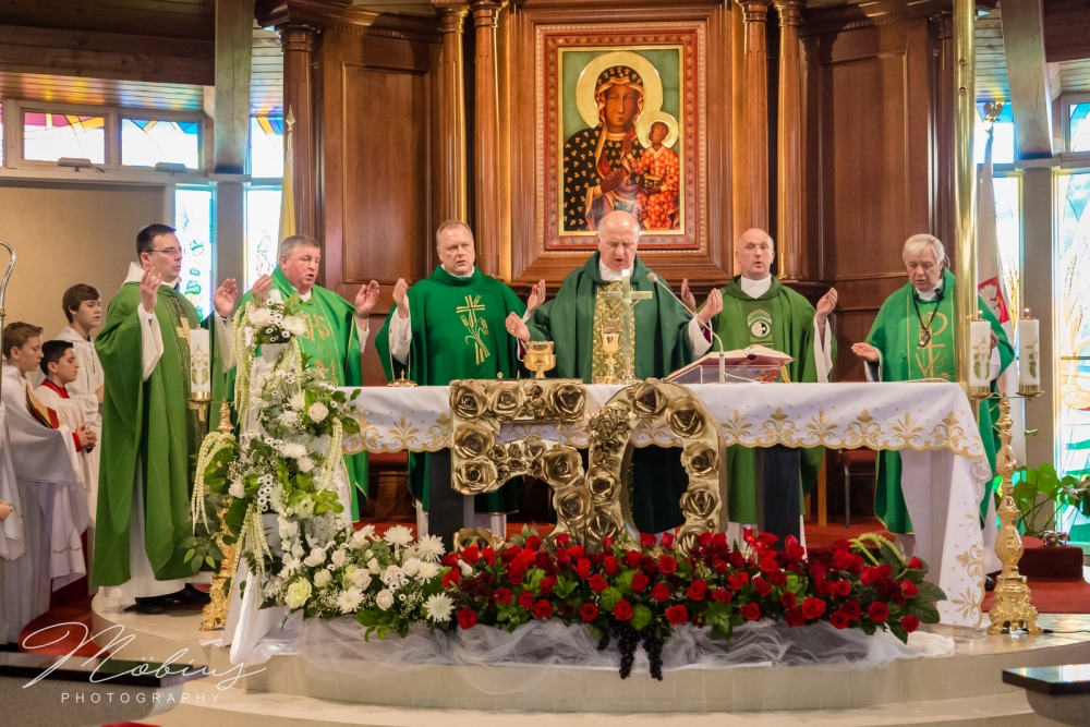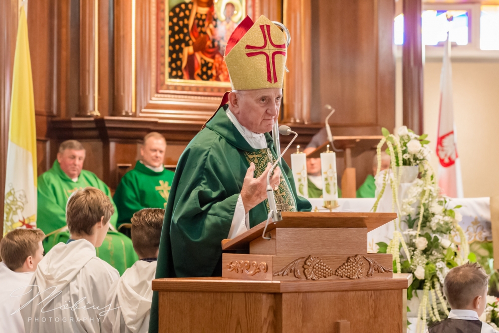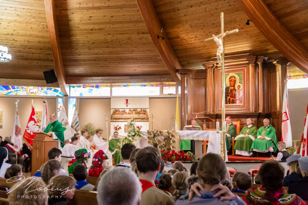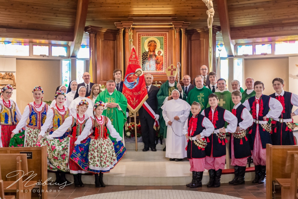 Kościół wypełniony był Polakami, którzy przybyli, by wspólnie dziękować Panu Bogu i Królowej Polski i Królowej Pokoju za kościół, w którym od lat modlili się i modlą w języku ojczystym. Obecne były poczty sztandarowe wszystkich organizacji polonijnych oraz parafialne. Bp Stefanek w czasie homilii podkreślił znaczenie miejsca modlitwy, wagę modlitwy wspólnotowej w rodzinie, wzajemnej miłości, zrozumienia i przebaczenia. Świat chce rodzinę zniszczyć, zmienić jej formę, zdegradować człowieka, ale nie wolno poddawać się, mamy czerpać z Chrystusa, modlitwy, Eucharystii, Sakramentów Świętych  siłę i moc do przezwyciężania zła, nie wolno poddać się – podkreślił homilista.
