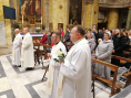 W 2019 roku przypada także 60 lat od chwili, kiedy duszpasterstwo Polaków na terenie całych Włoch powierzono po raz pierwszy chrystusowcowi, a był nim ks. Mieczysław Kowalczyk SChr (wcześniej tę funkcję pełnili: ks. Władysław Rubin oraz ks. Szczepan Wesoły). Obie te rocznice są godne tego, aby je zauważyć, docenić i uczcić… Dlatego też adwentowy dzień skupienia dla chrystusowców pracujących w Italii, przybrał formą szczególnie uroczystą. Przybyli na niego 16 grudnia 2019 roku z Niemiec: prowincjał ks. Bogdan Renusz SChr, wiceprowincjał ks. Sebastian Sosnowski SChr oraz ks. Marcin Dereszkiewicz SChr (wszyscy trzej związani w przeszłości z tym kościołem). Na wstępie uczestnicy odmówili koronkę do Bożego Miłosierdzia i wysłuchali konferencji ascetycznej, którą wygłosił ks. Sebastian. Następnie miała miejsce adoracja eucharystyczna oraz nieszpory. O godz. 18.30 rozpoczęła się uroczysta Eucharystia pod przewodnictwem ks. abp. Edwarda Nowaka, który wygłosił homilię. Po zakończonej liturgii, licznie zgromadzeni jej uczestnicy udali się do Auli Jana Pawła II, gdzie nestor chrystusowców pracujących na włoskiej ziemi, ks. Marian Burniak SChr, z właściwą sobie swadą i poczuciem humoru, wygłosił referat historyczny.