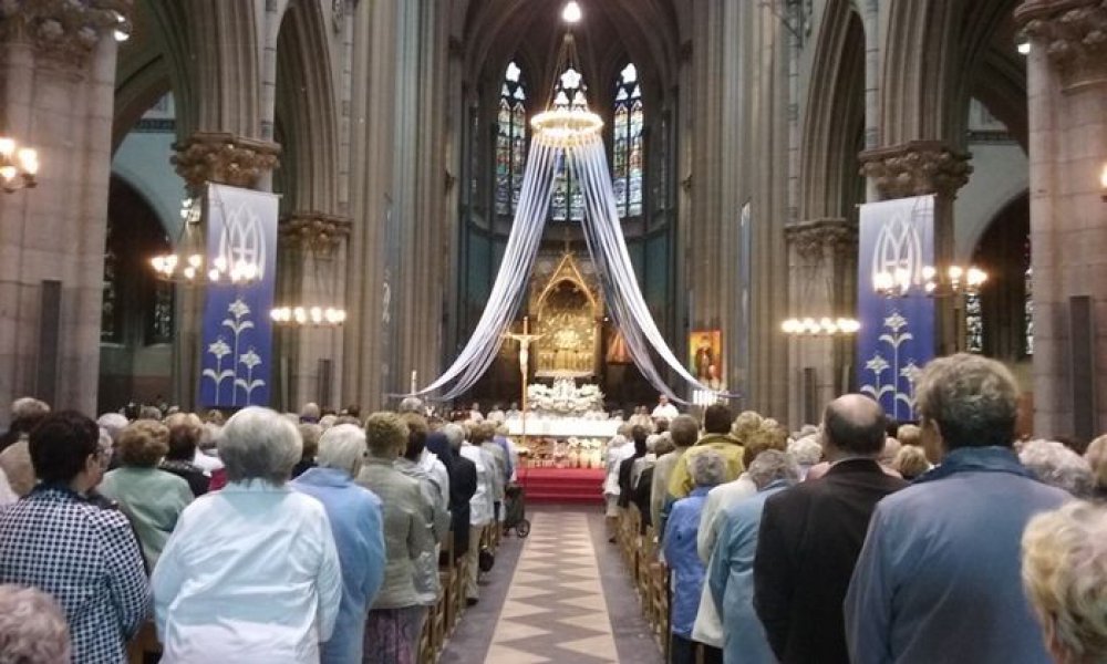 U progu kolejnego roku formacyjnego w mariackiej bazylice w belgijskim Dadizele rokrocznie gromadzi się Polonia z Nord i Pas-de-Calais wraz ze swoimi duszpasterzami (także chrystusowcami, którzy tam są najliczniejszą ‘reprezentacją’) na wspólnej modlitwie… W tym roku zgromadziliśmy się tam 17 września pod przewodnictwem nowomianowanego Rektora PMK we Francji, ks. Bogusława Brzysia, który też wygłosił okolicznościową, bardzo sugestywną homilię, w której wyszedł od jednego zdania, nawet jednego wyrazu odczytanej Ewangelii (Łk 7,36-50), by ukazać darmowość i wielkość Bożej miłości i miłosierdzia. Naszą odpowiedzią na całkowicie darmową, niezasłużoną przez nas, miłość Boga winny być nasze dzieła miłości oraz wdzięczność… Potrzeba nam zatem uczyć się miłosierdzia, potrzeba, by oczy i serca nasze były miłosierne: a w tym niech dopomaga nam modlitwa św. Siostry Faustyny o łaskę pełnienia miłosierdzia względem bliźnich (zob. Dzienniczek, 163) oraz Rok Jubileuszowy Miłosierdzia, który niebawem rozpoczniemy w całym Kościele, w uroczystość Niepokalanego Poczęcia NMP AD 2015 i który potrwa do uroczystości Jezusa Chrystusa Króla Wszechświata AD 2016. Słowami z papieskiej bulli ogłaszającej ów Rok Święty ks. Rektor zakończył swoje rozważanie, zachęcając jednocześnie do jej przeczytania. Na zakończenie Eucharystii, zwyczajem lat poprzednich, nastąpiło rozesłanie i błogosławieństwo katechetów, do którego dołączyliśmy prośbę w intencji rodzin – rodziców i dzieci (a którą podpowiadają zbliżające się wydarzenia: VIII Światowe Spotkanie Rodzin, które w przyszłym tygodniu odbywać się będzie w Filadelfii oraz październikowe XIV Zwyczajne Zgromadzenie Ogólne Synodu Biskupów pt. „Powołanie i misja rodziny w Kościele i świecie współczesnym”). Popołudniowe różańcowe nabożeństwo rozpoczęte w Godzinie Miłosierdzia i poprzedzone wspólnym odmówieniem Koronki do Bożego Miłosierdzia było naszym wspólnym wołaniem do Boga przez wstawiennictwo Jego i naszej Matki, by wspierał nasze wysiłki do stawania się świadkami miłości i miłosierdzia i by błogosławił wszelkie dobre dzieła, które w rozpoczynającym się roku formacyjnym i katechetycznym podejmujemy w naszych wspólnotach i stowarzyszeniach polonijnych i kościelnych. Na koniec dodajmy, że w przeżywanym Roku Życia Konsekrowanego w tegorocznej pielgrzymce licznie reprezentowane były zakonne wspólnoty męskie i żeńskie: poza wspomnianymi chrystusowcami i kapłanami diecezjalnymi przybyli trzej oblaci i pallotyn a do corocznie przybywających do Dadizele felicjanek z Bruay La Buissière dołączyły dawno już niewidziane sercanki z Fouquières-les-Béthune; przybyły również posługujące pośród włoskich emigrantów Siostry Misjonarki Maryi Niepokalanej Królowej Pokoju (Soeurs missionnaires de Marie Immaculée Reine de la Paix – Suore missionarie dell’Immacolata Regina della Pace) z Montigny-en-Ostrevent.