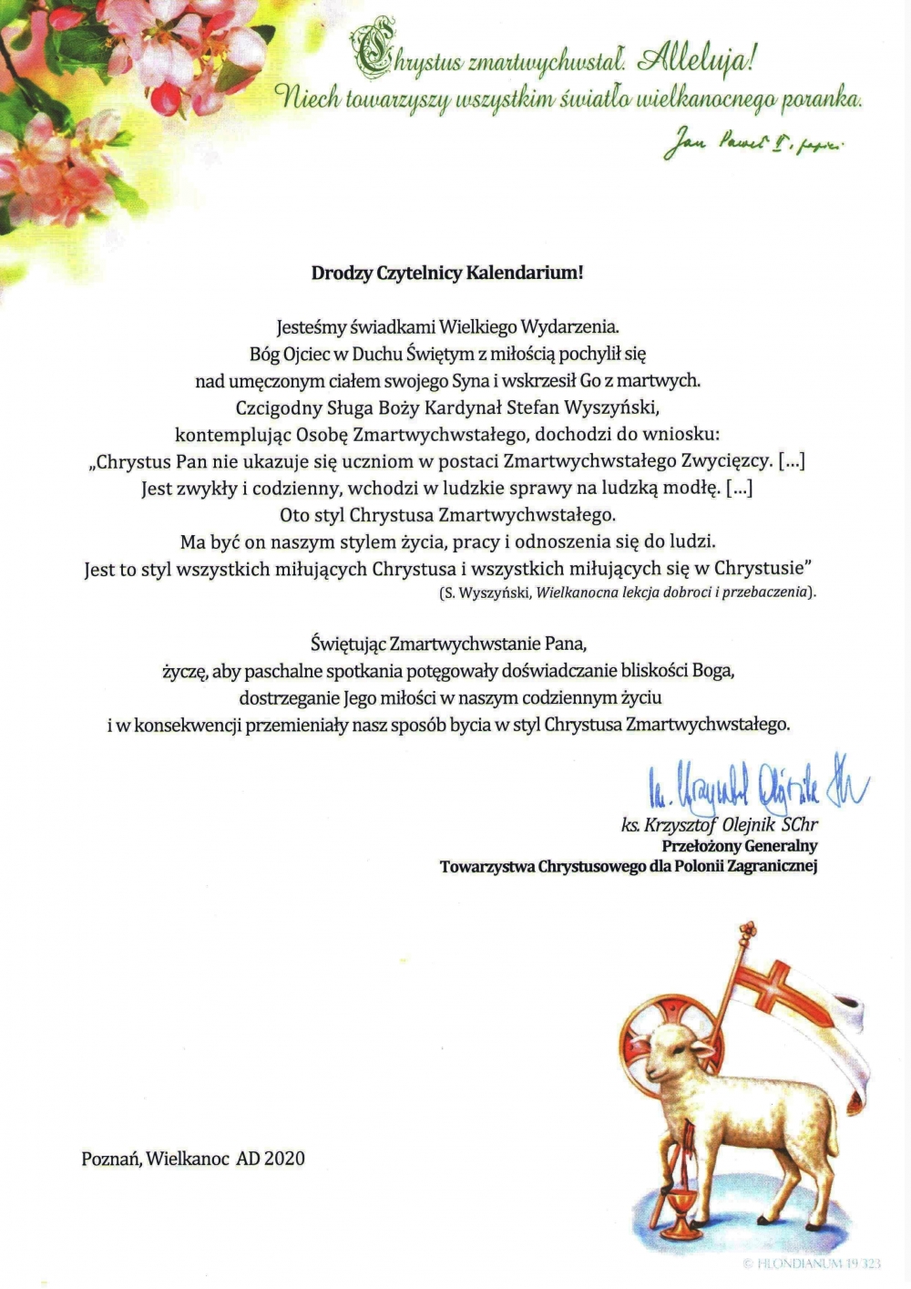 życzę, aby paschalne spotkania potęgowały doświadczanie bliskości Boga,
