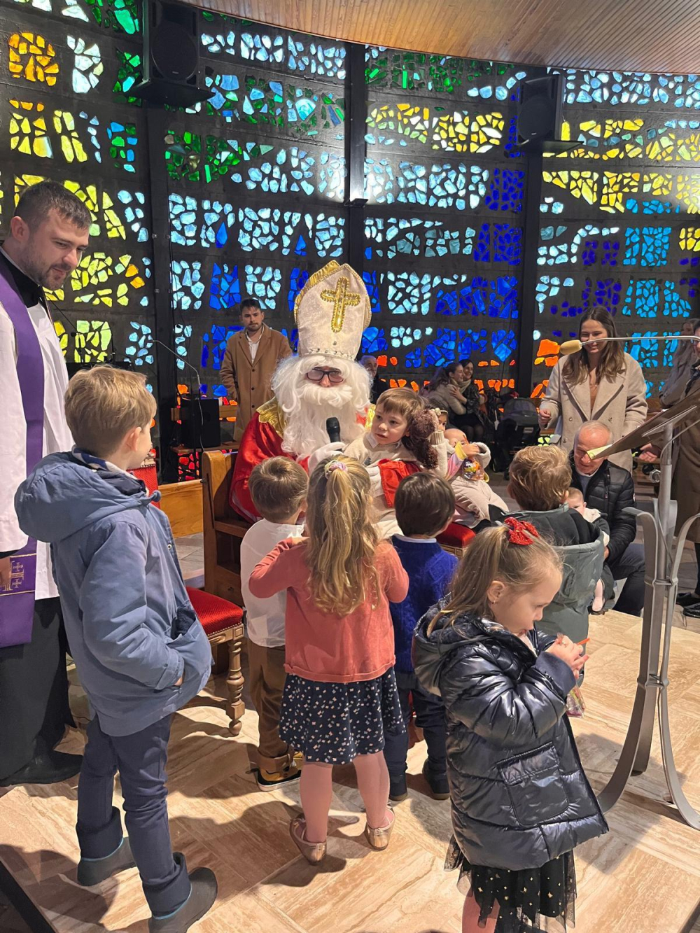 6 grudnia 2025 r. zawitał on do Domu Polskiego który gromadzi Polonię z tych miejscowości regionu, gdzie przy różnych zabawach i zajęciach plastycznych zgromadziło się 45 dzieciaków. Przybliżaliśmy sobie postać owego Świętego, który w swej hojności obdarzał wszystkich prezentami. Natomiast w niedzielę jeszcze raz Święty Mikołaj odwiedził nas w naszych świątyniach, aby razem z nami modlić się o świętość dla najmłodszych i nico starszych parafian.