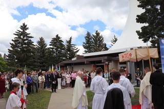Po dwóch latach ograniczeń wywołanych „pandemią” tegoroczne obchody Bożego Ciała w Calgary mogły odbyć się bez żadnych przeszkód w niedzielę 19 czerwca 2022 r. Po uroczystej Mszy Świętej sprawowanej o godz. 12.30, której przewodniczył i homilię wygłosił ks. proboszcz Adam Bobola SChr, wyruszyła procesja do czterech ołtarzy na placu parkingowym. Dla wiernych, którzy nie mogli uczestniczyć w procesji z różnych względów, po każdej Mszy Świętej. przygotowane zostało nabożeństwo adoracyjne ze specjalnymi modlitwami.