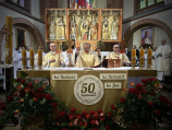 W niedzielę 16 maja 2021 r. w kościele pw. św. Katarzyny Aleksandryjskiej w Goleniowie przeżywano dziękczynienie za 50 lat kapłańskiej posługi ks. Tadeusza Zachary SChr, ks. Bernarda Bednarza SChr i ks. Jana Kałuży SChr. Okolicznościową homilię wygłosił wikariusz generalny zgromadzenia, ks. Bogusław Burgat SChr. Dodajmy, że w pewnym sensie historia zatoczyła koło: otóż nasi Współbracia Jubilaci swoje kapłańskie święcenia przyjmowali w uroczystość Wniebowstąpienia Pańskiego i wspólna celebracja jubileuszowa w Goleniowie również odbyła się w tę uroczystość.