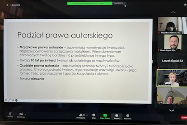 W czasie spotkania odbyło się szkolenie z zakresu prawa autorskiego przeprowadzone przez dr hab. Ksenię Kakareko z Uniwersytetu Warszawskiego. Druga jego część dotyczyła zagadnień związanych z opracowywaniem przewodnika dla kapłanów i zakonników działajacych w przestrzeni medialnej.