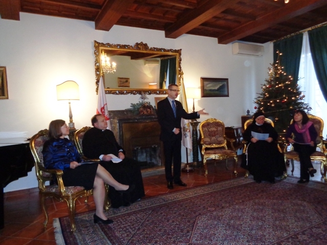 Duszpasterz Katolickiej Szkoły Podstawowej w Rzymie ks. Jacek Staniek SChr wygłosił krótką katechezę. Zauważył, że chociaż w kalendarzu liturgicznym najważniejszym świętem jest dla nas Wielkanoc, to jednak Boże Narodzenie niewątpliwe jest tym, które odczuwamy jako najbardziej nam bliskie i rodzinne. Podkreślił ponadto, iż triada „Bóg, honor, ojczyzna”, jakże ważna dla Polaków i polskich żołnierzy, jest tą, na której każdy chrześcijanin może zbudować w dobry sposób swoje życie duchowe”.