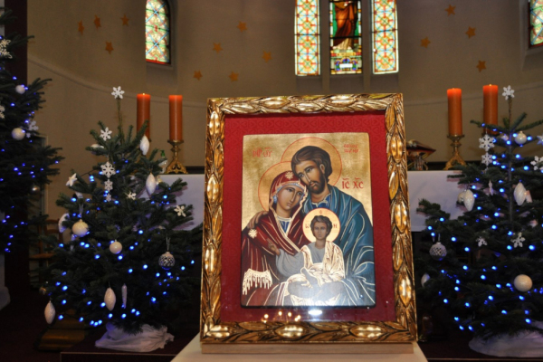 Tuż po Bożym Narodzeniu liturgia zachęca nas do spojrzenia na Świętą Rodzinę, Jezusa, Maryję i Józefa: w ów dzień Ewangelia skłania nas do uwielbiania Boga za to, że wszechmocny Syn Boży przyszedł na ten świat w ludzkiej rodzinie. Sam Syn Boga narodził się jako bezbronne dziecko, zależne całkowicie od opieki i pomocy swoich rodziców. Potrzebował, tak jak każde dziecko, rodzinnego ciepła i miłości, aby prawidłowo wzrastać i rozwijać się. Dlatego Rodzina z Nazaretu jest wzorem, w którym wszystkie rodziny świata mogą znaleźć pewny punkt odniesienia oraz inspirację. Zatem w niedzielę Świętej Rodziny 27 grudnia 2020 roku w polskiej parafii w Aulnay sous Bois przeżywaliśmy kolejną uroczystość, inną niż wszystkie pozostałe, które do tej pory wydarzyły się w naszej wspólnocie: odpust i uroczyste poświęcenie ikony Świętej Rodziny.