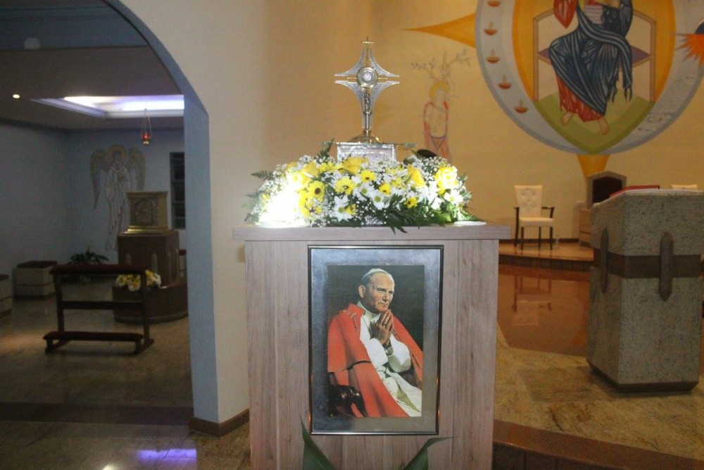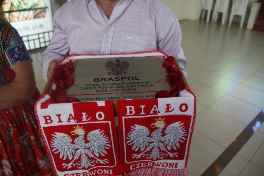 Z tej też okazji proboszcz parafii ks. Everaldo zaprosił prowincjała chrystusowców ks. Kazimierza Długosza SChr, aby przewodniczył Mszy św. w języku polskim oraz o pobłogosławił kamień węgielny pod budowę oratorium - kaplicy poświęconej św. Janowi Pawłowi II.
