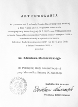 5 września 2016 r. w Senacie Rzeczypospolitej Polskiej, Marszałek p. Stanisław Karczewski powołał nową Polonijną Radę Konsultacyjną, której jednym z członków jest nasz współbrat ks. Zdzisław Malczewski z prowincji brazylijskiej.