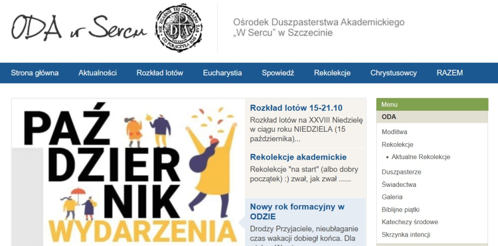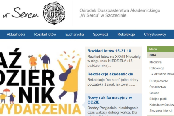‘W Sercu’ Szczecina odbyło się nie tylko wspomniane już spotkanie młodych, ale w związku z rozpoczętym kolejnym rokiem akademickim w niedzielny wieczór 15 października 2023 r. tradycyjnie na wspólnej modlitwie i Eucharystii pod przewodnictwem abpa Andrzeja Dzięgi, metropolity szczecińsko-kamieńskiego spotkało się środowisko akademickie miasta (zarówno studenci, jak i profesorowie oraz władze szczecińskich uczelni). Wcześniej swoje spotkanie zorganizowali byli już studenci, którzy przed laty byli zaangażowani działalność Ośrodka Duszpasterstwa Akademickiego „W Sercu” przy szczecińskim sanktuarium NSPJ.