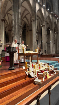 Pierwszego dnia po części panelowej, uczestniczy Jahreskonferenz pojechali na uroczystą Mszę Świętą w kolońskiej katedrze z okazji święta Ofiarowania Pańskiego, której przewodniczył pasterz archidiecezji kard. Rainer Maria Woelki. Wraz z nim tę Mszę koncelebrowali wszyscy biskupi pomocniczy (m.in. odpowiedzialny za IKS bp Dominikus Schwaderlapp) oraz kapłani pełniący posługę duszpasterską w swoich ojczystych językach. Nie zabrakło na niej naszych Współbraci, którzy pracują w pięciu placówkach na terenie archidiecezji (Kolonia, Bonn, Leverkusen, Wuppertal, Düsseldorf), a także posługujących wraz z kapłanami na każdej z tych Polskich Misji Katolickich sióstr misjonarek Chrystusa Króla.