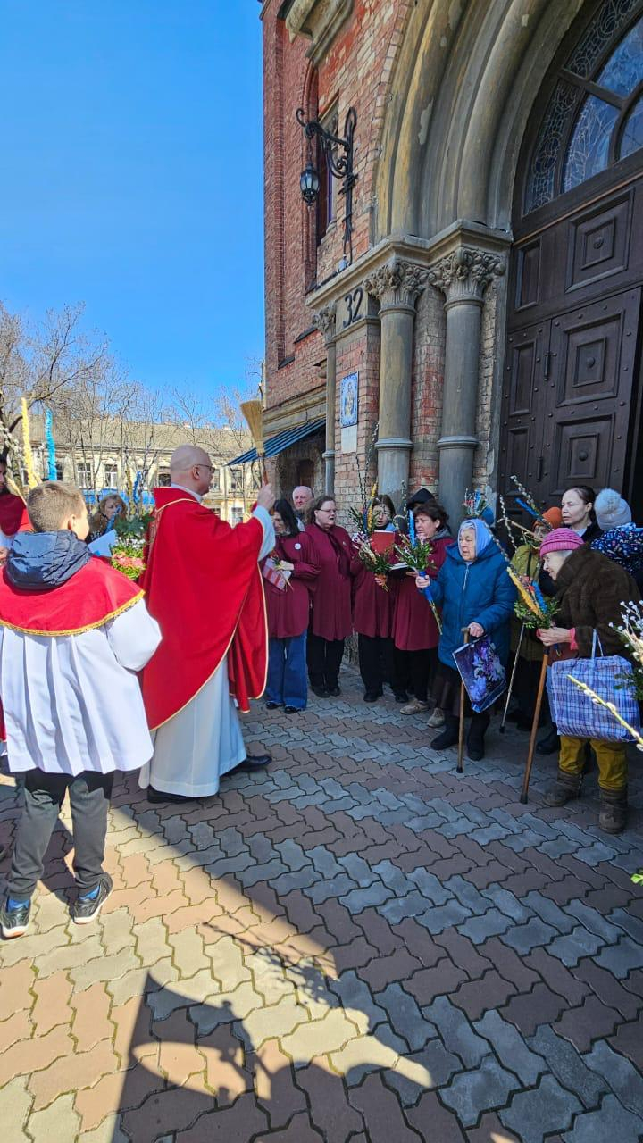 Następnego dnia, w niedzielę 24 marca 2024 r., ks. Generał uczestniczył w obchodach Niedzieli Palmowej zarówno w Mikołajowie, jak i Kisielówce (gdzie również odbyło się poświęcenie tymczasowej kaplicy).