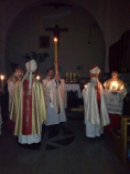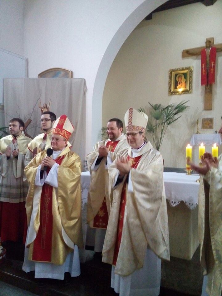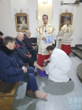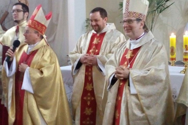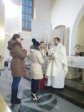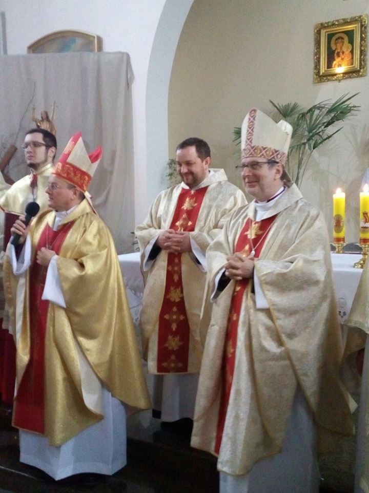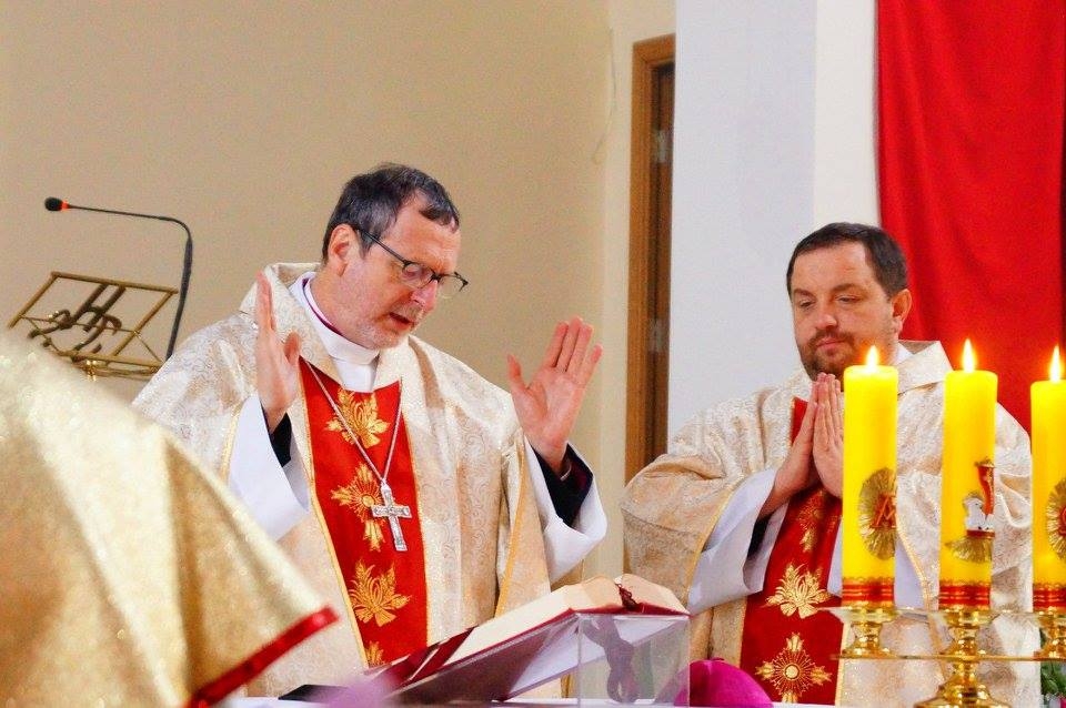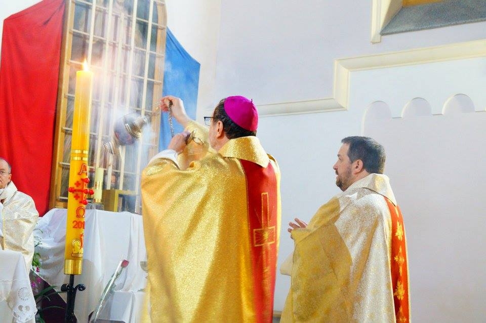 Drodzy bracia i przyjaciele chce podzielić się radością płynącą z przeżywania w tym roku świąt Wielkanocnych! Dla mnie i całej parafii one w tym roku miały wyjątkowy charakter. W tym tak ciężkim dla nas okresie, gdy cały czas trwa wojna i za oknami słychać odgłosy wystrzałów artylerii, wierni donieckiej parafii gromadzili się w swojej świątyni na sprawowanie Liturgii Wielkiego Tygodnia i świąt Zmartwychwstania Pańskiego. Szczególnym darem Bożym dla donieckiej wspólnoty była obecność pośród nich Nuncjusza Apostolskiego na Ukrainie, abpa Claudio Gugerottiego. Eminencja przekazał parafianom pozdrowienia od Papieża Franciszka. Poinformował także, że Ojciec Święty zna ich sytuację i zlecił Nuncjuszowi wizytę w Doniecku, by podtrzymał na duchu wszystkich żyjących na tym terenie i zapewnił o modlitwie całego Kościoła w ich intencji. Nuncjusz wraz z biskupem pomocniczym diecezji charkowsko-zaporoskiej Janem Sobiło przewodniczyli Liturgii Triduum Paschalnego i Wielkanocy, po czym powrócili do siebie.