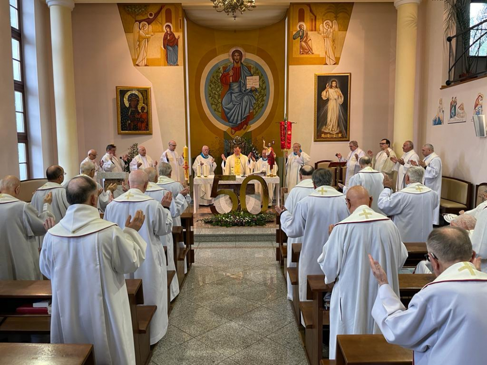 Okolicznościowe słowo, które było kierowane w tych dniach, poza komentarzem do odczytywanych mszalnych czytań, stanowiło wezwanie do radości, że gorliwa kapłańska posługa przynosi piękne i błogosławione owoce. Stanowiło zaproszenie do odśpiewania Panu Bogu hymnu wdzięczności i uwielbienia (co też wspólnotowo czyniliśmy śpiewając gromkie Te Deum i Magnificat z towarzyszeniem organów i klarnetu): do dziękowania za wszelkie łaski i dary, do podziękowania za to, że Pan wciąż prowadzi, umacnia i dopomaga. Stanowiło w końcu wezwanie, by wciąż, jak w konferencjach o kapłaństwie powtarzał Ojciec Ignacy Posadzy, zachwycać się Chrystusem, któremu się służy: „On musi nas urzec. Musimy Go przeżyć radośnie jako misterium fascinosum, co urzeka i za serce chwyta (…) Chrystusa trzeba miłować i to każdym fibrem duszy. Chrystus musi się stać pasją i namiętnością kapłańskiego serca” (I. POSADZY, Kapłan w świecie współczesnym, w: I. POSADZY, Dzieła t. I. O Kapłaństwie, Eucharystii i Kościele, Poznań 2006, s. 141). A przykładem i zachętą niech będzie działalność ewangelizacyjna Apostołów, o której się dowiadujemy dzięki odczytywanym w okresie paschalnej pięćdziesiątnicy passusom z Dziejów Apostolskich. Wtedy nasze życie kapłańskie i zakonne zajaśnieje jako świadectwo o Bożej obecności i działaniu w tym świecie.