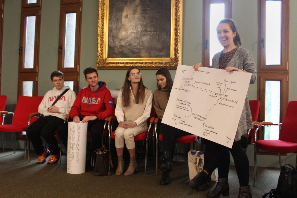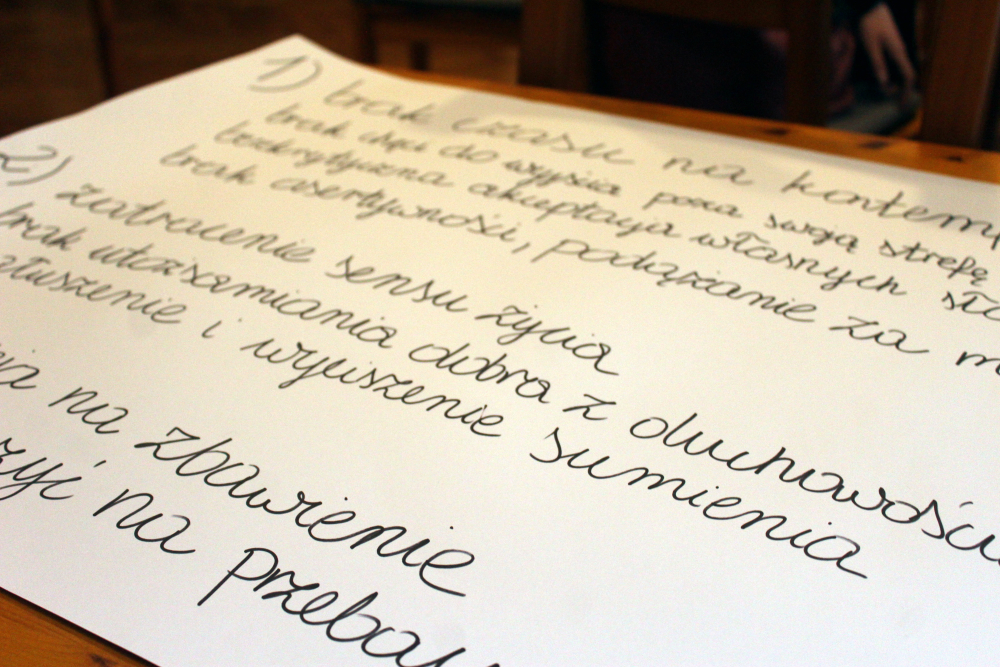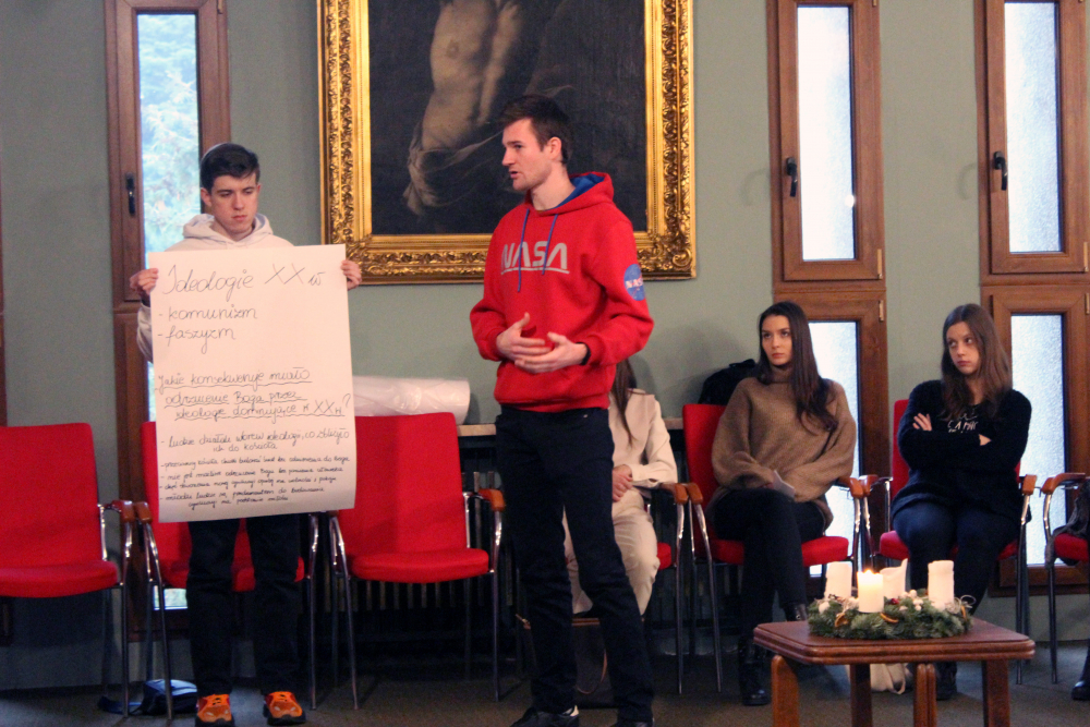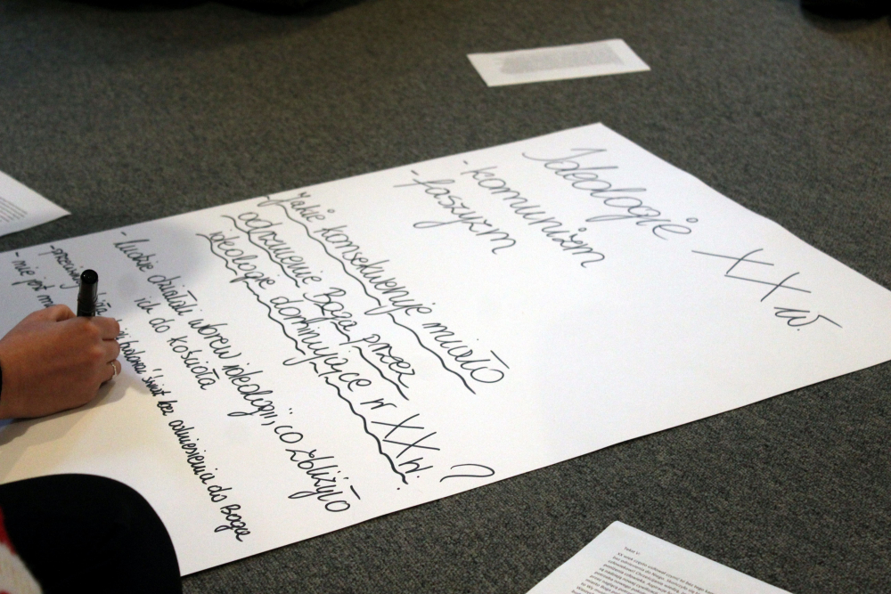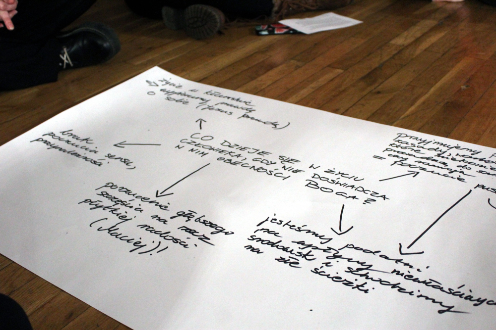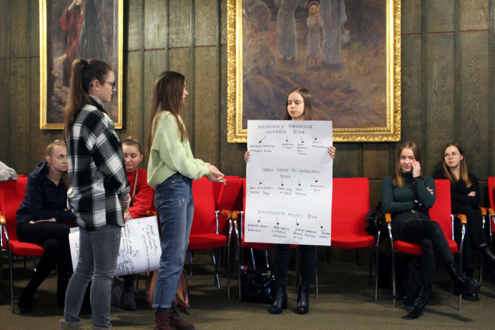 Następnie owoce wspólnych grupowych rozważań zostały zaprezentowane na forum. Uczestnicy mieli za zadanie w podsumowaniu udzielenie odpowiedzi: dlaczego człowiek i świat potrzebują wiary w Boga? Całość pracy przygotowała, współpracująca z Fundacją s. Dobrawa Beata Korzeniewska, albertynka.