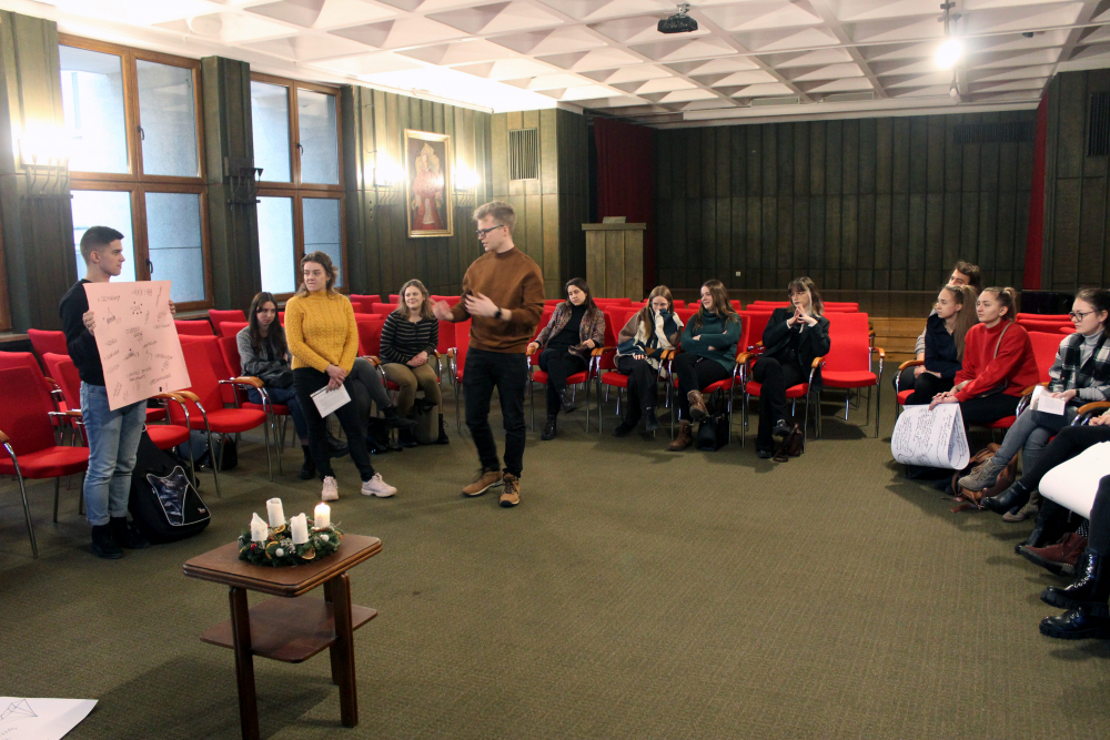 Rozpoczął się on od wysłuchania konferencji ks. Dariusza Kowalczyka, przewodniczącego zarządu Fundacji pt. „Źródła i natura chrześcijańskiej nadziei”, po której uczestnicy podzieli się na mniejsze grupy. W tych grupach dzielenia zastanawiali się nad kilkoma ważnymi pytaniami. Pierwszym z nich, wprowadzającym, było: „Dlaczego człowiek traci w życiu nadzieję?” Studenci zastanawiali się, dlaczego człowiek przestaje praktykować wiarę, odrzuca ją, przestaje się modlić, podpisuje akt apostazji. Zasadnicza część spotkania w grupach miała na celu określenie konsekwencji odrzucenia Boga, jakie są zarówno dla człowieka, jak i świata stworzonego.