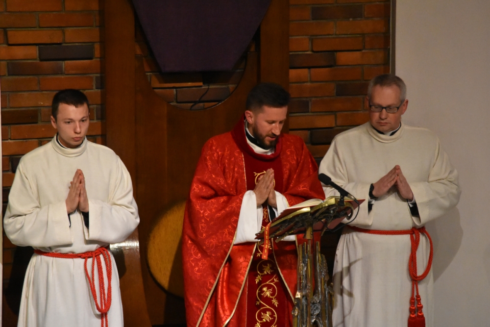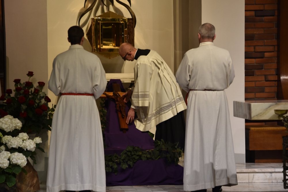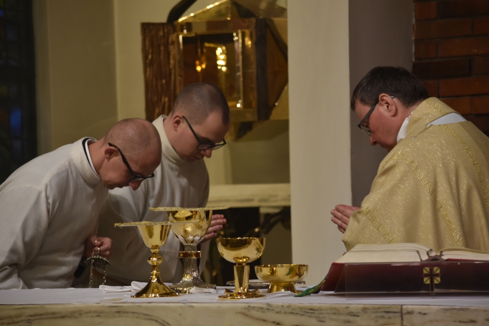 Chcemy Panu Bogu za tę Jego niepojętą miłość dziękować…; chcemy Go uwielbiać i błogosławić…, zatem po wielkoczwartkowego liturgii rozpoczęliśmy adorację Najświętszego Sakramentu, który został przeniesiony do specjalnie przygotowanej kaplicy i duchowo towarzyszyliśmy Jezusowi w ostatnim etapie Jego ziemskiego życia – w modlitwie w Getsemani, pojmaniu, procesie przed żydowską starszyzną i rzymskim namiestnikiem, w krzyżowej drodze na miejsce ukrzyżowania. Kontynuowaliśmy wspólnotową i indywidualną modlitwę adoracyjną w Wielki Piątek, w dniu, w którym Chrystus został ofiarowany jako nasza Pascha. O godz. 15:00 w przydomowym parku uczestniczyliśmy w nabożeństwie Drogi Krzyżowej poprowadzonym przez prefekta seminarium, ks. dra Pawła Jasinę SChr. Kulminacją wielkopiątkowej refleksji i modlitwy było wieczorna Liturgia na cześć Męki Pańskiej z Adoracją Krzyża pod przewodnictwem przełożonego domu, ks. dra Marka Grygiela SChr.