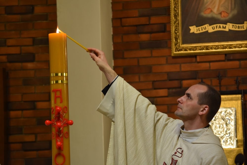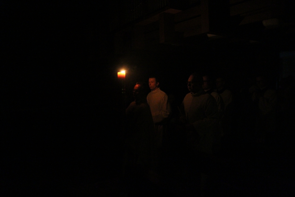 Po zachodzie słońca zgromadziliśmy się przy pomniku Kardynała Założyciela stojącym przed naszym domem na rozpoczęcie Wigilii Paschalnej, najważniejszej i bodaj najpiękniejszej celebracji roku liturgicznego, której przewodniczył rektor seminarium, ks. dr Jan Hadalski SChr. Rokrocznie sprawowane obrzędy, zawarte w poszczególnych częściach liturgii Wigilii Paschalnej: poświęcenie ognia, przygotowanie i zapalenie Paschału, orędzie wielkanocne, dłuższa niż zwykle liturgia słowa, przypominająca całą historię zbawienia, od stworzenia do odkupienia, poświęcenie wody i odnowienie chrzcielnych przyrzeczeń i w końcu uroczysta liturgia eucharystyczna podkreślają wyjątkowość tej nocy, że to noc błogosławiona (vere beata nox), albowiem to noc Zmartwychwstania, noc zwycięstwa, noc przejścia ze śmierci do życia. Bogactwo poszczególnych części liturgii nocy paschalnej stanowiły leitmotiv homilii wygłoszonej przez ks. prof. Pawła Bortkiewicza SChr.