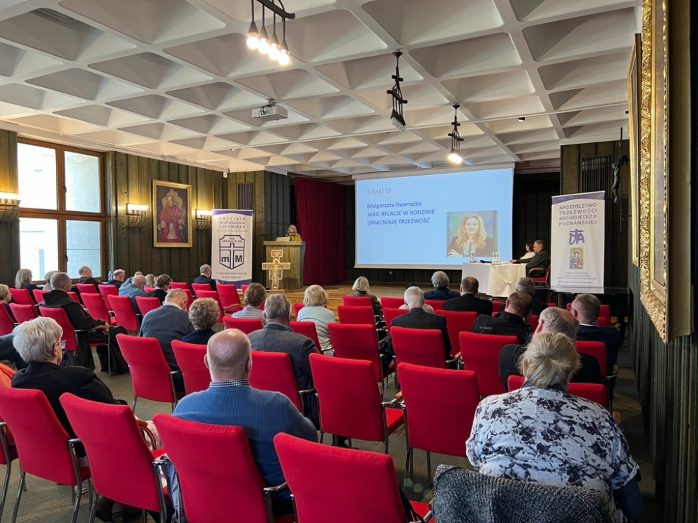 Kolejną, 10 maja 2023 r., w naszym poznańskim Domu Rekolekcyjnym zorganizowała Archidiecezja Poznańska, Krucjata Wyzwolenia Człowieka oraz Duszpasterstwo Apostolstwa Trzeźwości Archidiecezji Poznańskiej. Po Mszy Świętej w poznańskiej katedrze, zaproszeni goście, pośród których należy wymienić bpa Tadeusza Bronakowskiego, biskupa pomocniczego diecezji łomżyńskiej (tyt. Tigisi in Mauretania) oraz przewodniczącego Zespołu KEP ds. Apostolstwa Trzeźwości i Osób Uzależnionych, wicepremiera Henryka Kowalczyka, minister Marlenę Maląg, minister rodziny i polityki społecznej, i wszyscy uczestnicy w auli naszego domu wysłuchali kilku przedłożeń o promocji trzeźwości i przeciwdziałaniu pladze alkoholizmu w naszym narodzie, o podejmowanych działaniach na szczeblu państwowym i lokalnym, gminnym i parafialnym, o potrzebie budowania relacji w rodzinach, które umacniałyby trzeźwość.