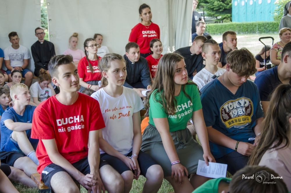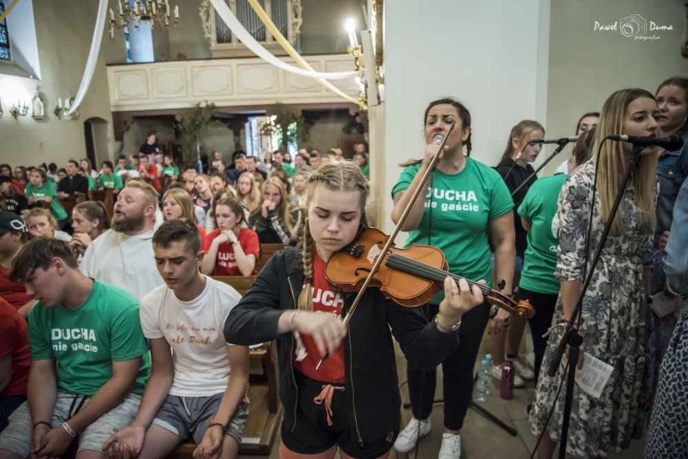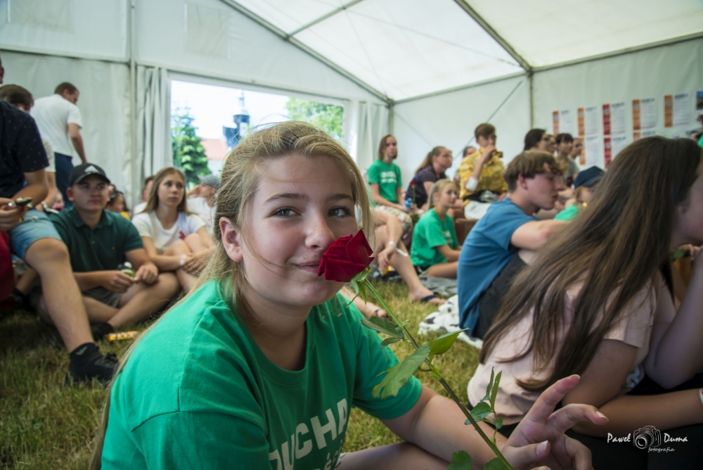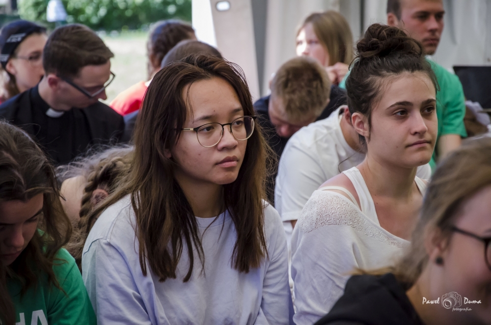 W ramach STREFY Słowa gościliśmy Igę i Konrada Grzybowskich – założycieli fundacji Ster na Miłość. Od lat w posłudze dla młodzieży, zakochanych i małżonków. Poprowadzili niezwykle dynamiczną konferencję „Zakochani do szaleństwa” oraz spotkania w grupach dla chłopców i dla dziewcząt. W środę, dniu miłosierdzia, ewangelizatorzy ze Wspólnoty św. Tymoteusza z Gubina poprowadzili konferencję z adoracją krzyża oraz nabożeństwo pokutne pt. „Kamień z serca”. Gościem kolejnego dnia był Kamil Roszyk z Poznania, który opowiedział o tym „jak Bóg stanął na Jego drodze”.