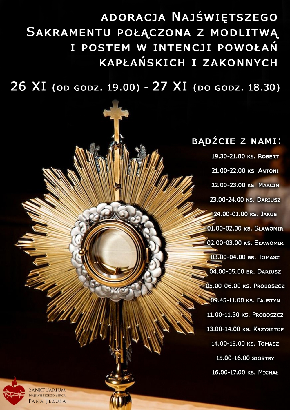 Na prośbę ks. Arcybiskupa Metropolity Andrzeja Dzięgi, od I Niedzieli Wielkiego Postu trwa w archidiecezji szczecińsko-kamieńskiej nieustająca adoracja Najświętszego Sakramentu (po jednym dniu w każdej parafii) połączona z modlitwą i postem w intencji powołań kapłańskich i zakonnych.