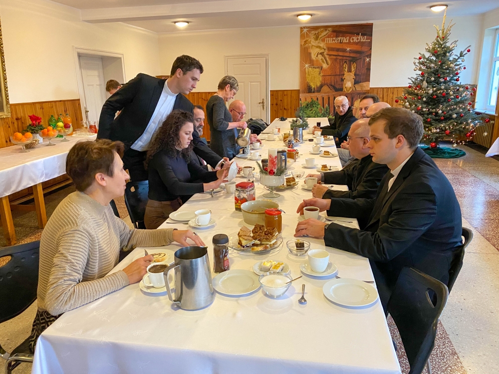 Zaraz po Świętach Narodzenia Pańskiego, 28 grudnia z dwudniową wizytą do domu nowicjackiego przybyli rodzice i krewni naszych najmłodszych współbraci. Na co dzień ten kontakt nie jest taki częsty ze względu na zasady formacji początkowej chrystusowców. Rodzice mogli przyjrzeć się i uczestniczyć w porządku dziennym ich synów, doświadczając życia zakonnego w nowicjacie. Włączyli się w rytm modlitw, a w oktawie świątecznej swoją radość wyrazili w śpiewie kolęd i pastorałek. Nowicjusze przygotowali dla swoich najbliższych specjalny program artystyczny. W tym czasie domowników nowicjatu odwiedził również przełożony generalny ks. Krzysztof Olejnik SChr, który chciał się spotkać z rodzicami nowicjuszy. Podczas niedzielnej Eucharystii, w Święto Świętej Rodziny Ksiądz Generał podkreślił, że zarówno dla tej rodziny z której się wywodzimy, jak i tej zakonnej najważniejszą osobą, ze względu na którą się gromadzimy jest Wcielony Bóg – Jezus Chrystus. To On wraz z Maryją i Józefem czuwa na każdą rodziną, pokazując jednocześnie, że przyobleczenie się w prawdziwą miłość, pozwala jej stać się świętą.