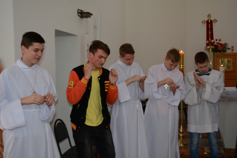 Na zaproszenie proboszcza z parafii św. Jana Ewangelisty i św. Maksymiliana M. Kolbego w Mińsku z pomocą przyjechał z Poznania ks. Marcin Stefanik oraz klerycy Maksymilian i Roman. Pierwszym punktem spotkania była sobotnia zbiórka LSO. Młodsza grupa z okazji jubileuszu miłosierdzia udała się na pielgrzymkę do katedry, starsi uczestniczyli w zajęciach integracyjnych. W niedzielę 8 maja, na sumie parafialnej, po rocznym przygotowaniu, funkcję lektora przyjęło czterech starszych ministrantów. Na czas tej posługi otrzymali alby i krzyże lektorskie ( http://jan.by/2/news/615-lectors2016 ).