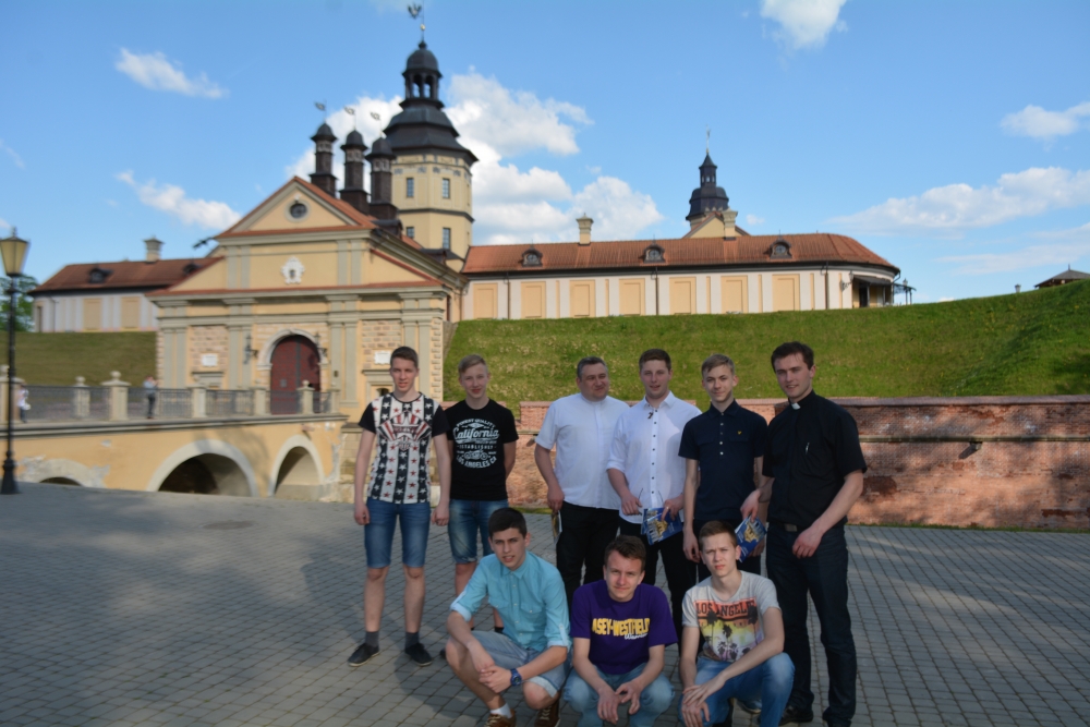 Wieczorem lektorzy z Mińska z duszpasterzami udali się do ks. Andrzeja Szody do Hancewicz na wspólne międzyparafialne spotkanie formacyjne. W programie znalazły się konferencje o zakochaniu, miłości, płciowości i duchowej zbroi Bożej. Jedno ze spotkań poświęcone było świadectwom powołaniowym i rozeznawaniu woli Bożej. Dzięki przygotowywanej na każdy dzień pantomimie uczestnicy mogli wizualnie przedstawić ewangeliczne teksty jako element homilii. Nie zabrakło aktywnego spędzania czasu w formie wieczornych rozgrywek piłki nożnej i wycieczki krajoznawczej po lesie z miejscowym myśliwym. W drodze powrotnej, ucząc młodych pielęgnowania pamięci o polskiej kulturze, tradycji i historii nawiedziliśmy Nieśwież. W mieście tym znajduje się jeden z pierwszych jezuickich kościołów na terenie Rzeczypospolitej i zamek, zamieszkiwany do II wojny światowej przez ród Radziwiłłów. O swojej posłudze na tych ziemiach opowiedziały pracujące tam Siostry Misjonarki Chrystusa Króla dla Polonii Zagranicznej.