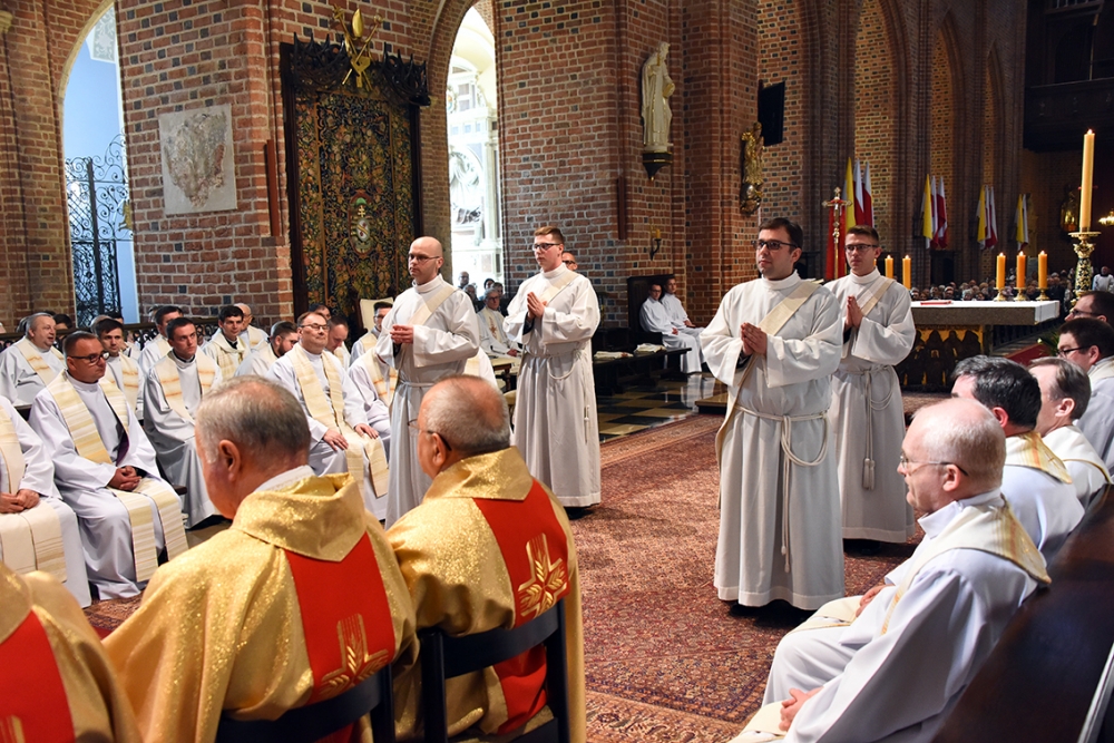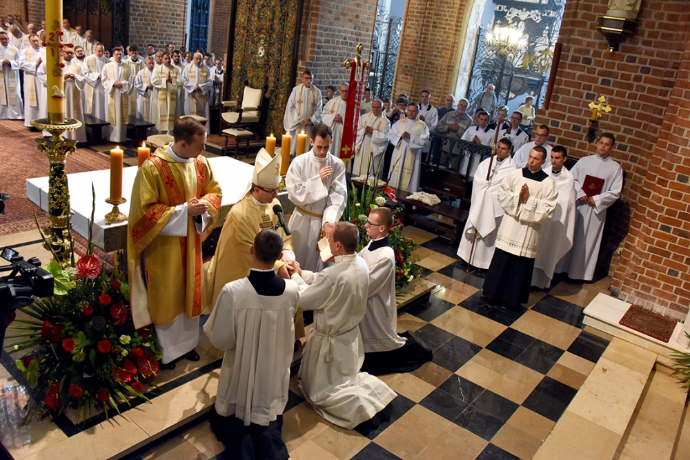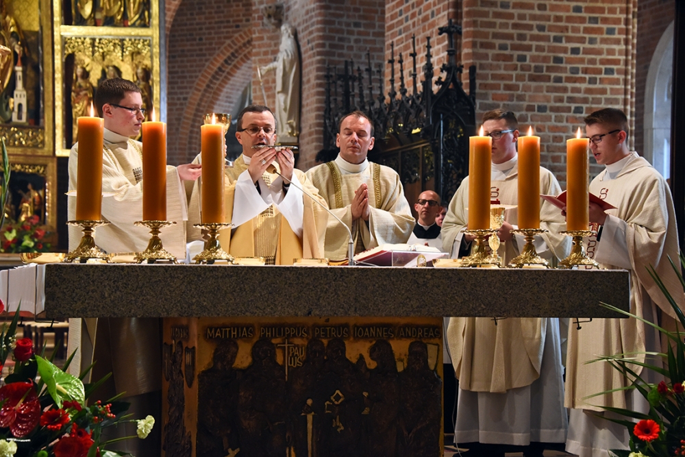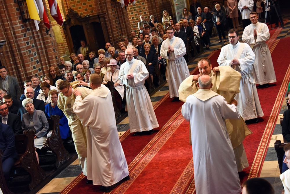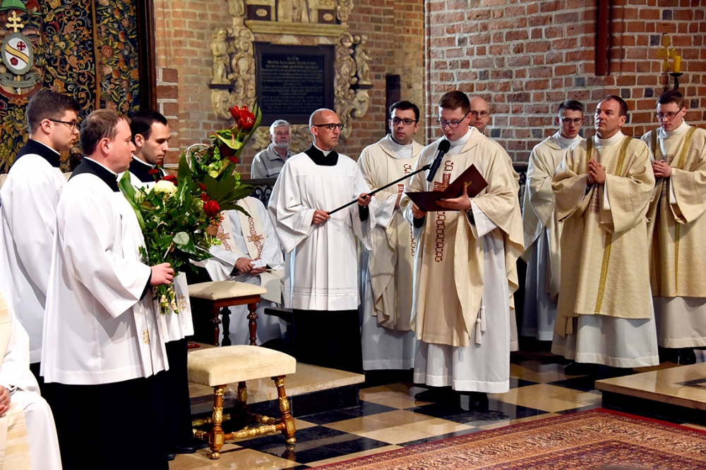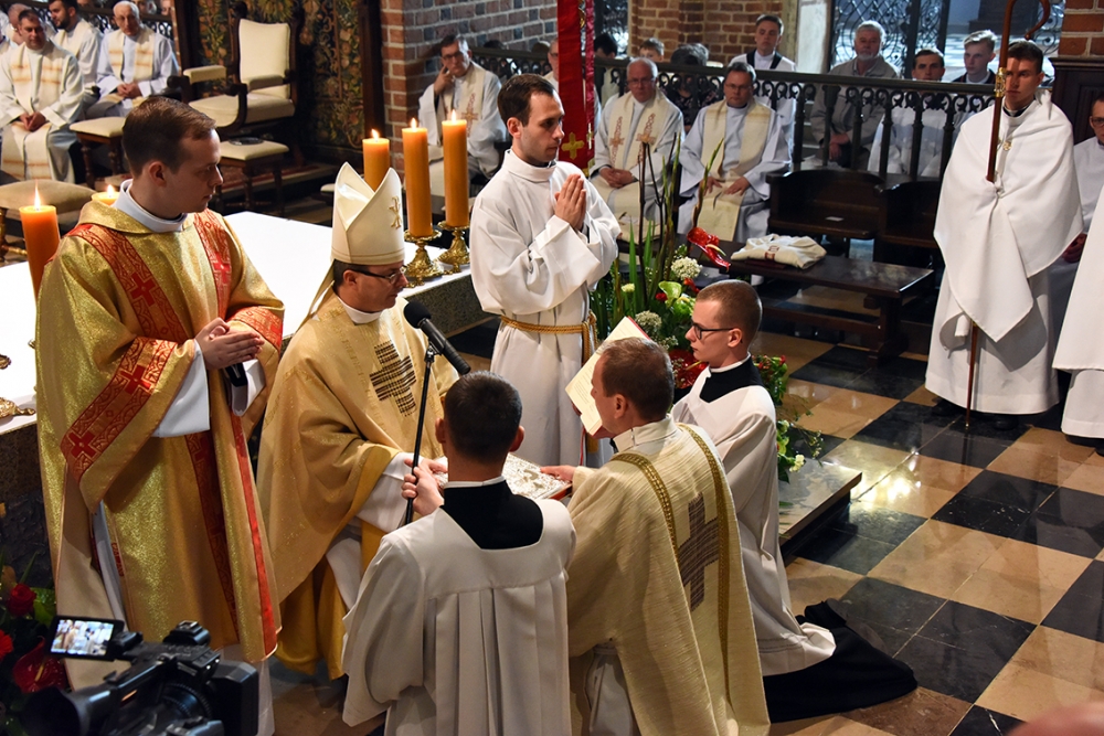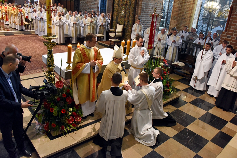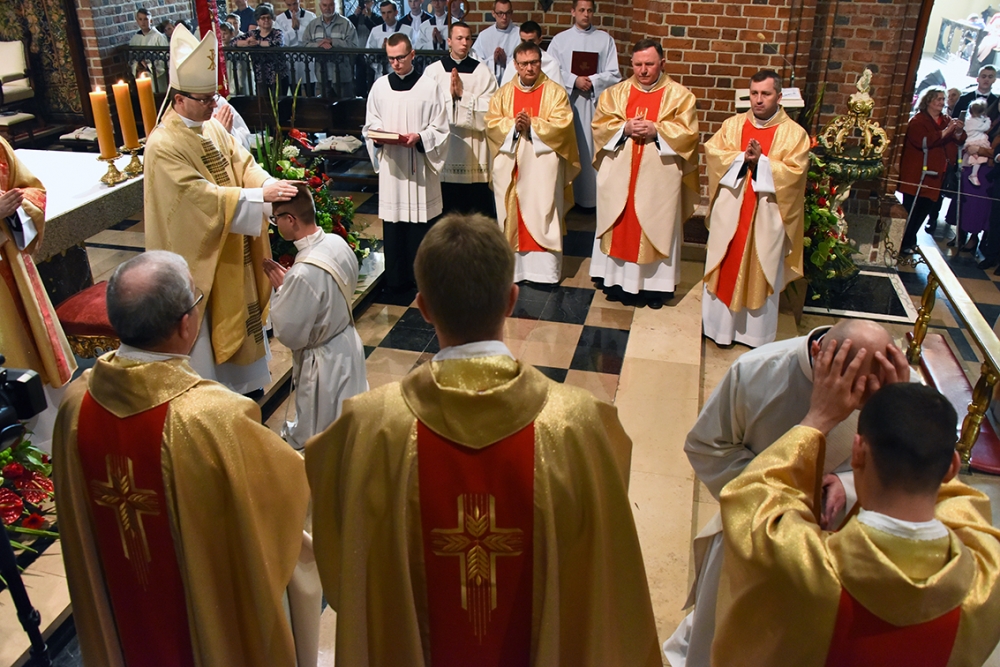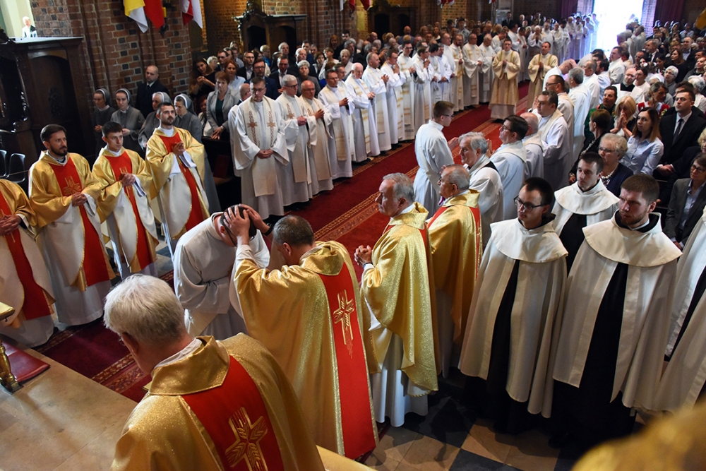 Uroczystość święceń prezbiteratu i diakonatu to wielkie święto w zgromadzeniu… Gromadzi ono wielu Współbraci z kraju i zagranicy: jednak nie tylko oni towarzyszyli tego dnia nowo wyświęconym prezbiterom i diakonom Towarzystwa Chrystusowego, którzy ten sakrament przyjęli przez posługę bpa Damiana Bryla, biskupa pomocniczego archidiecezji poznańskiej (tyt. Suliana). Neoprezbiterów – Michała Armatysa, Karola Baja, Romana Melnyka i Maksymiliana Ślusarczyka oraz nowych diakonów Wojciecha Kułacha i Dominika Matuszewskiego modlitwą otoczyły ich rodziny, znajomi i przyjaciele, uczestnicząc w tej dla nich ważnej i podniosłej chwili we wtorek 21 maja 2019 r. w poznańskiej bazylice archikatedralnej. Wśród licznie zgromadzonego duchowieństwa należy zauważyć najwyższych przełożonych Towarzystwa, wychowawców i moderatorów przyjmujących święcenia oraz ich proboszczów. Nie zabrakło sióstr i braci zakonnych oraz naszych nowicjuszy i alumnów, z którymi nowo wyświęceni wzrastali w zakonnym i kapłańskim powołaniu.