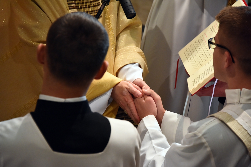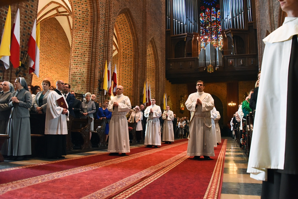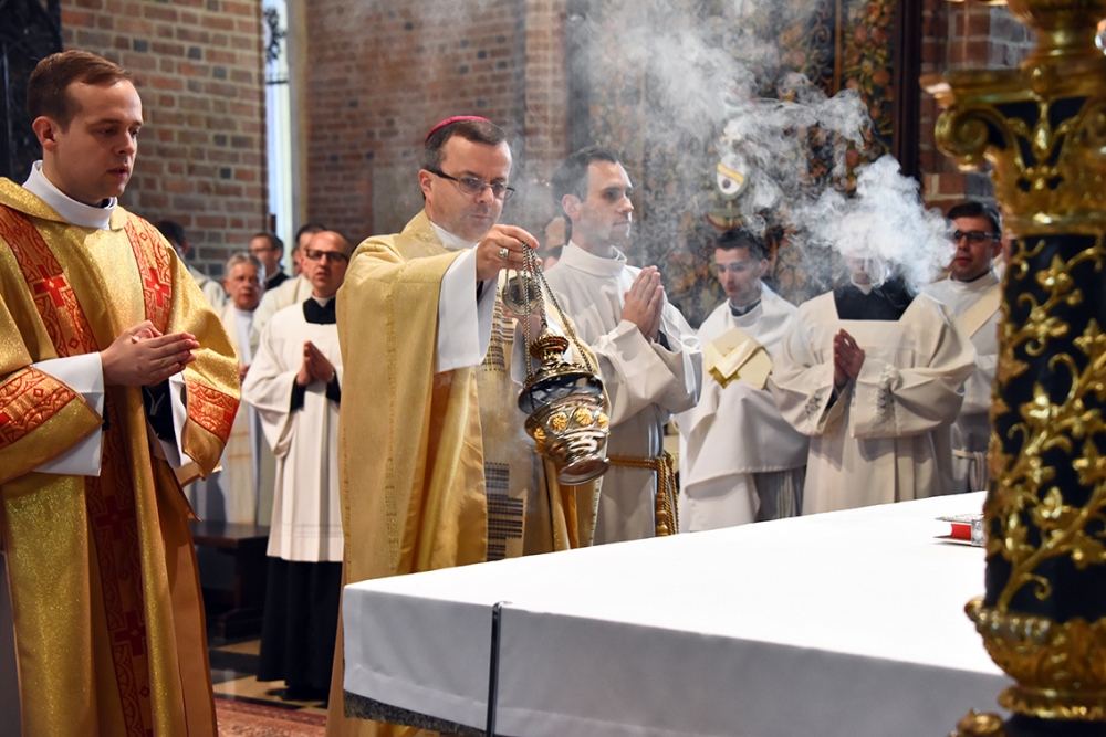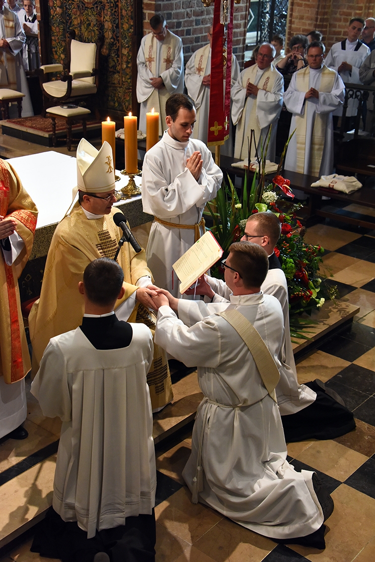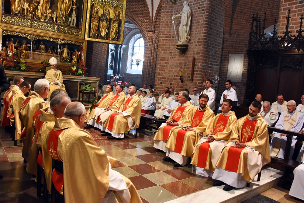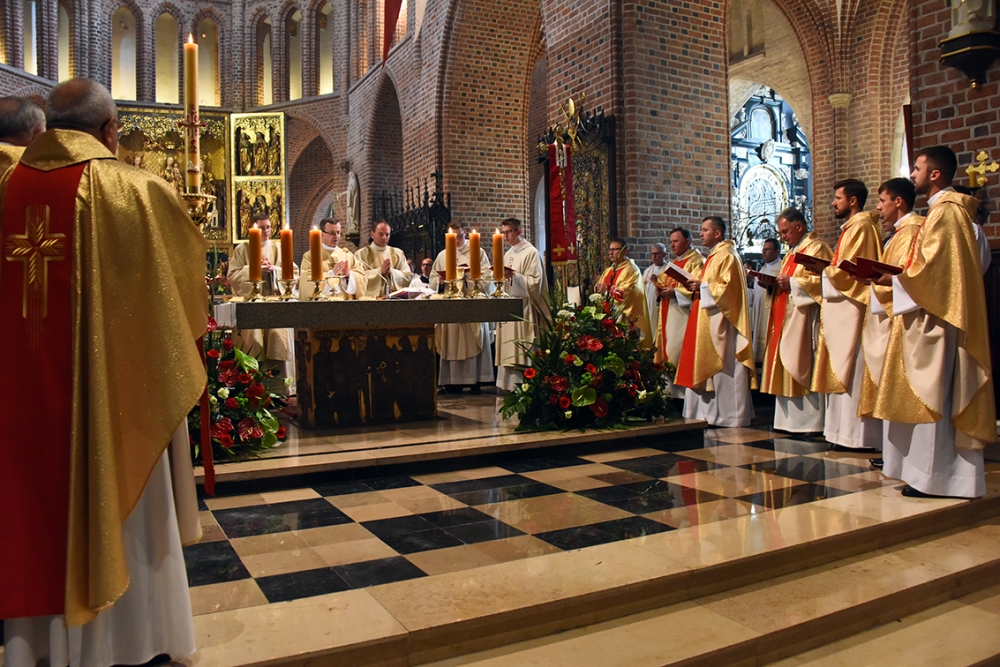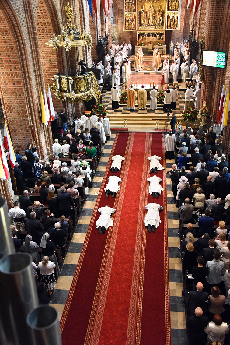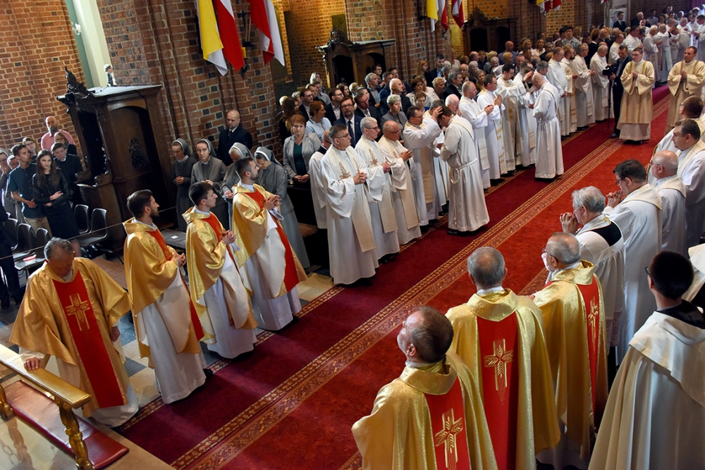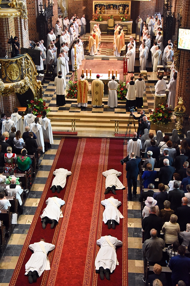 Uroczystość święceń prezbiteratu i diakonatu to wielkie święto w zgromadzeniu… Gromadzi ono wielu Współbraci z kraju i zagranicy: jednak nie tylko oni towarzyszyli tego dnia nowo wyświęconym prezbiterom i diakonom Towarzystwa Chrystusowego, którzy ten sakrament przyjęli przez posługę bpa Damiana Bryla, biskupa pomocniczego archidiecezji poznańskiej (tyt. Suliana). Neoprezbiterów – Michała Armatysa, Karola Baja, Romana Melnyka i Maksymiliana Ślusarczyka oraz nowych diakonów Wojciecha Kułacha i Dominika Matuszewskiego modlitwą otoczyły ich rodziny, znajomi i przyjaciele, uczestnicząc w tej dla nich ważnej i podniosłej chwili we wtorek 21 maja 2019 r. w poznańskiej bazylice archikatedralnej. Wśród licznie zgromadzonego duchowieństwa należy zauważyć najwyższych przełożonych Towarzystwa, wychowawców i moderatorów przyjmujących święcenia oraz ich proboszczów. Nie zabrakło sióstr i braci zakonnych oraz naszych nowicjuszy i alumnów, z którymi nowo wyświęceni wzrastali w zakonnym i kapłańskim powołaniu.