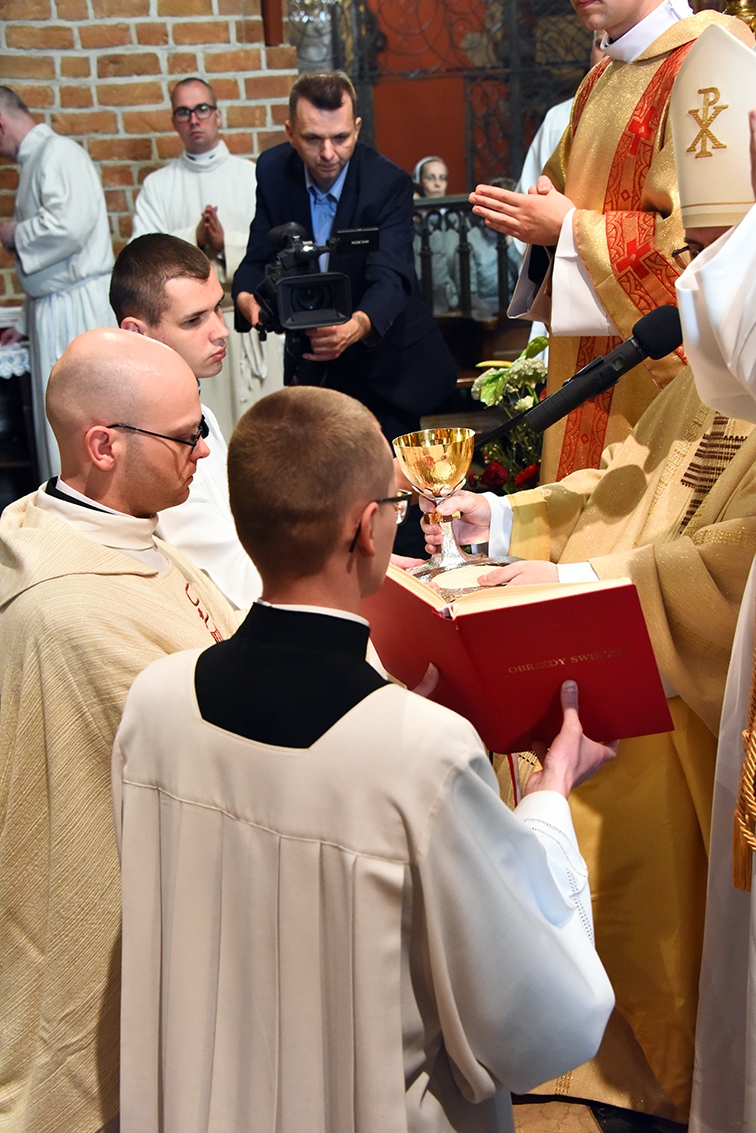 Ks. Biskup w wygłoszonej homilii przypomniał czym jest zakonne i kapłańskie powołanie, że to sam Chrystus, który jest naszym Panem, Królem i Zbawicielem, wzywa i wybiera, a przyjmowane święcenia jeszcze bardziej wiążą z Nim i ze wspólnotą zakonną, do której powołuje. Nowo wyświęconym prezbiterom i diakonom a także sobie wzajemnie, albowiem te majowe dni, w których odbywają się święcenia i prymicje dla innych z nas są kolejnymi rocznicami przyjmowania sakramentu święceń, życzymy tego, byśmy potrafili być wdzięczni Panu Bogu za Jego dobrodziejstwa, za dar powołania i wybrania, by Dobra Nowina rozszerzała się.