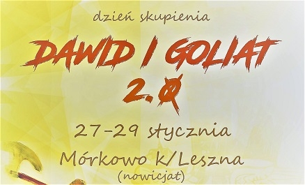 O radzeniu sobie z tym, co przerasta człowieka w życiu, zwłaszcza duchowym, rozważała młodzież, która przybyła na skupienie do naszego nowicjackiego domu w Mórkowie. Historia walki Dawida z Goliatem była tematem przewodnim spotkania, odbywającego się w czasie 27-29 stycznia 2017 roku.