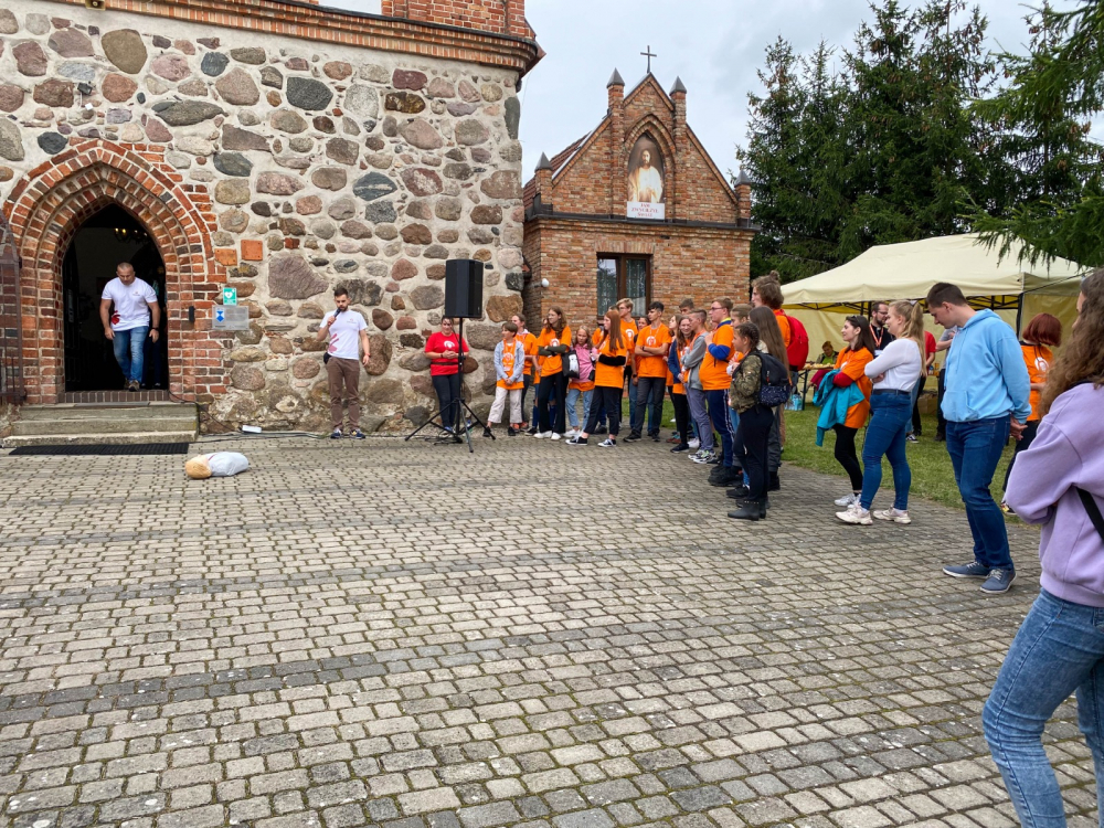 Po strawie dla ducha przyszedł czas na posiłek dla ciała. Wyśmienitą grochówkę i bułki przygotowały panie z Koła Gospodyń Wiejskich w Klępinie a «Pizzeria 105» ze Stargardu specjalnie dla uczestników GT 2021 upiekła smakowite pizze. Kolejnym punktem programu była niezwykle emocjonująca gra przygotowana przez Siostry Misjonarki Chrystusa Króla dla Polonii i przeprowadzona przez jedyną misjonarkę na Górze Tabor 2021 – s. Annę Błaszak MChR z Pyrzyc. O godzinie 15.15 uczestnicy odśpiewali Koronkę do Bożego Miłosierdzia, którą poprowadziła niezawodna pani Joannie Stanuch, za co bardzo serdecznie dziękujemy.