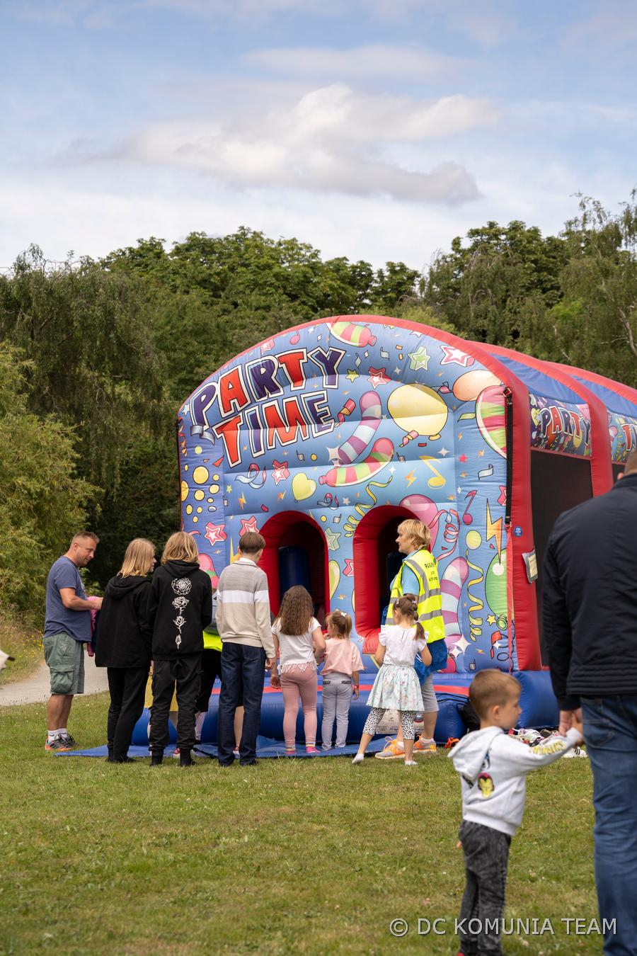 Tymczasem najmłodsze dzieci mogły skorzystać z jazdy konnej oraz uczestniczyły w zawodach w dmuchanych zamkach. Jednak zawody sportowe dla ojców wraz z dziećmi oraz całych rodzin, których celem było integrowanie pokoleń i ukazanie jedności rodzin, okazały się ‘strzałem w dziesiątkę’. Dużą popularnością cieszyły się również inne, przygotowane atrakcje, jak zaproszona policja, wywiad z lekarzem czy pokaz samochodu straży pożarnej. Największe zainteresowanie wzbudził nasz gość specjalny, Dawid Pakulski (określany jako Młody Pudzian). To młodzieniec urodzony w Anglii i rozwijający karierę jako Strongmen. Na przygotowanej scenie, pomiędzy wszystkimi atrakcjami i rozgrywkami, swoje talenty wokalne mogli prezentować wszyscy, zarówno dzieci, jak i dorośli. Pokaz sztuk walki karate stanowił swoiste résumé całego programu wspólnego popołudnia integracyjnego.