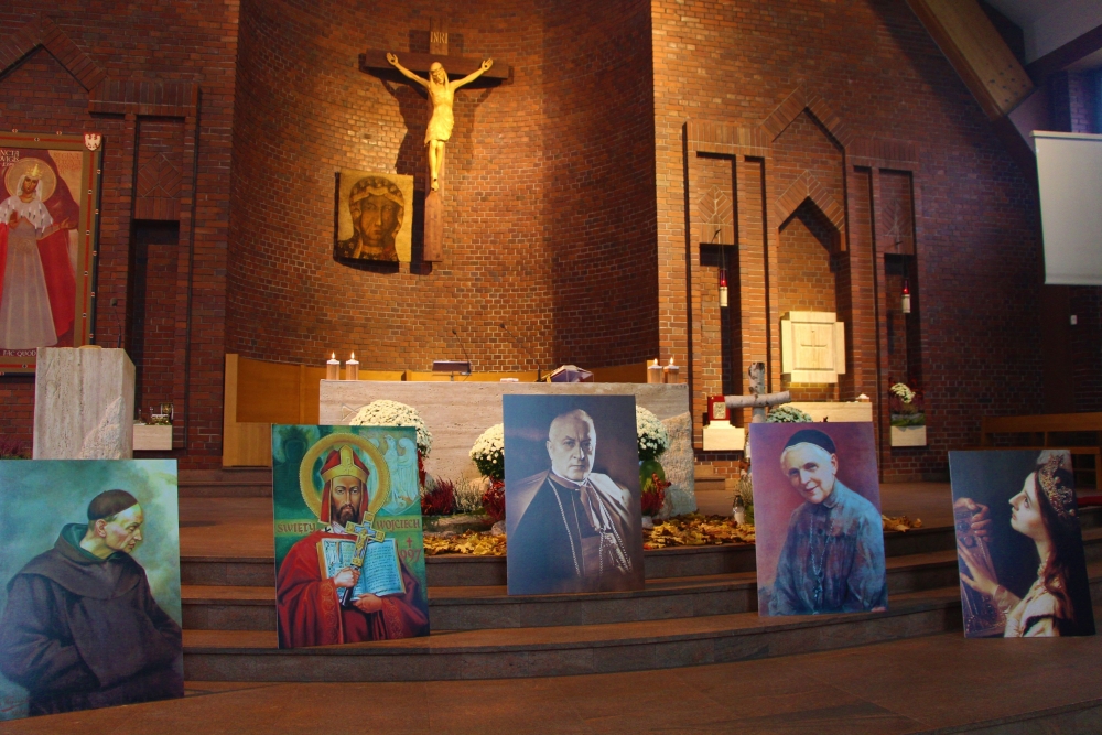 W przededniu jubileuszu 100 rocznicy odzyskania niepodległości przez Polskę, w który wpisuje się 70 rocznica śmierci Czcigodnego Sługi Bożego kard. Augusta Hlonda – prymasa Polski i Założyciela Towarzystwa Chrystusowego dla Polonii, w niedzielę 4 listopada dzieci z parafii św. Jadwigi Królowej wraz z ks. Krzysztofem Wąchałą SChr podczas Mszy św. przedstawiały przygotowaną historię życia wybranych postaci „Wielkich Polaków” - osobowości, świętych patriotów, dla których świętość, by była pełna, trzeba połączyć z miłością do Ojczyzny. Sięgając do samych początków, dzieci przedstawiły postać św. Wojciecha – biskupa i męczennika, św. Jadwigi Królowej – patronki naszej parafii, św. Rafała Kalinowskiego, św. Urszuli Ledóchowskiej oraz szczególnie w tym roku wspominanego Czcigodnego Sługi Bożego Kardynała Augusta Hlonda, który tak mówił o sobie: