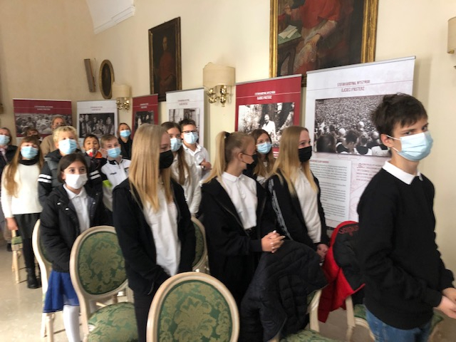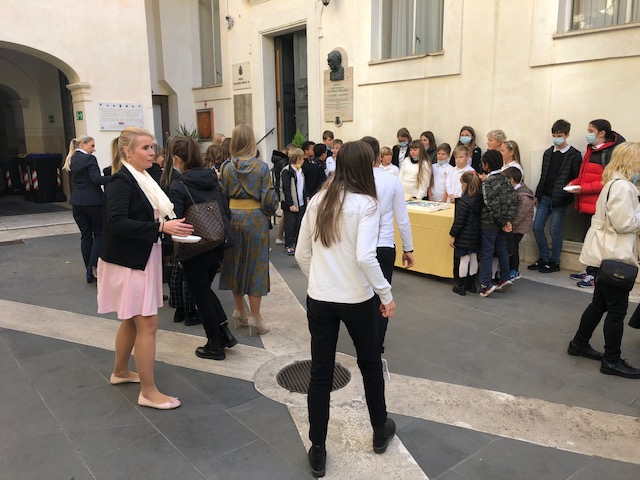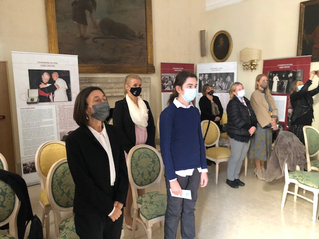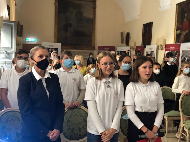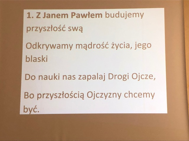 Dalsze uroczystości, do których cała szkolna społeczność, jak mówiła dyrektor szkoły Joanna Chojnacka, przygotowywała się przez wiele miesięcy, także w czasie pandemii, poprowadzili uczniowie najstarszej klasy. Albowiem, kontynuując swoje powitalne przemówienie Pani Dyrektor, pomysł przyjęcia św. Jana Pawła II za patrona naszej szkoły zrodził się w naszych sercach wiele miesięcy temu i tym bardziej cieszymy się, że, po długim oczekiwaniu staje się on faktem. A brali w nich udział konsul RP we Włoszech Agata Ibek-Wojtasik oraz wieloletni przyjaciel św. Jana Pawła II Marcello Bedeschi, z którym uczniowie szkoły przeprowadzili wywiad, pytając go o wspomnienia związane z papieżem-Polakiem i inspiracje płynące z wieloletniej przyjaźni.