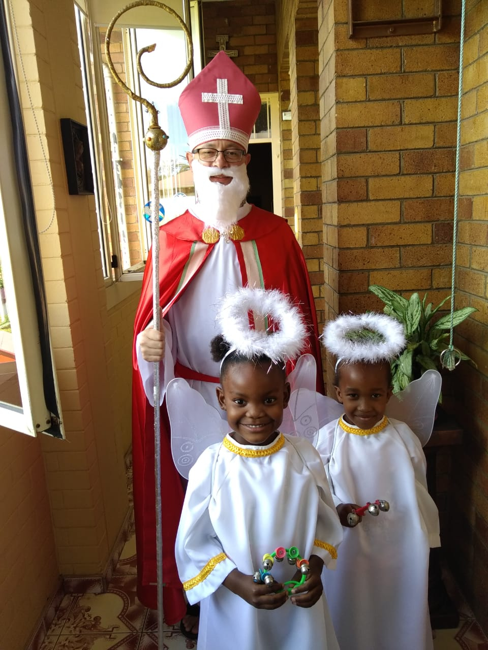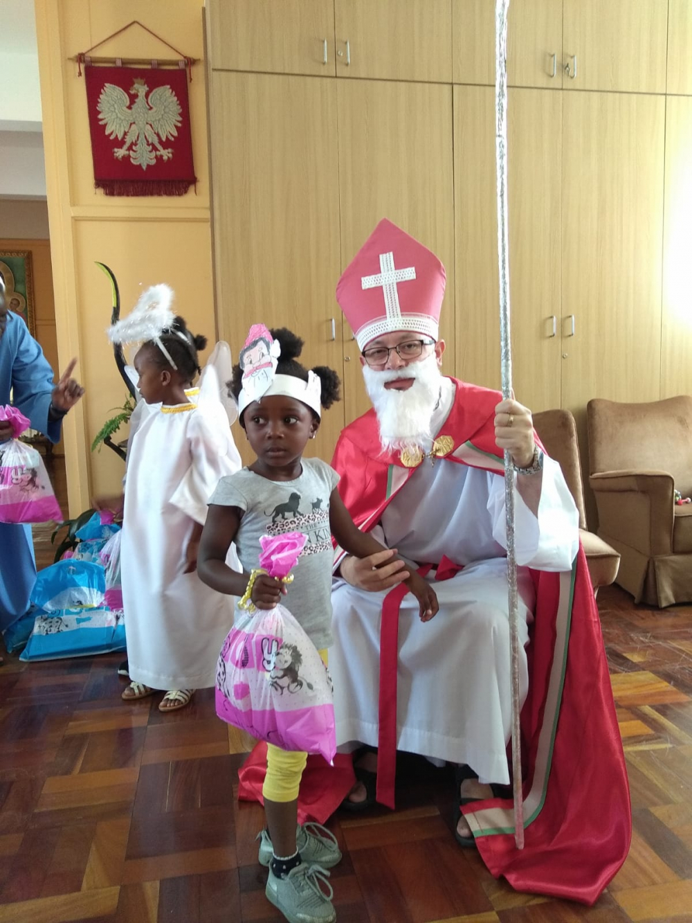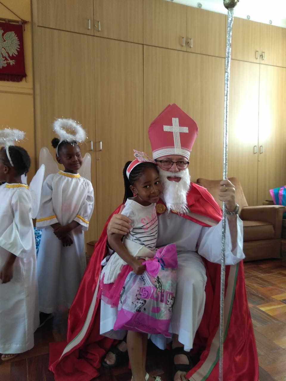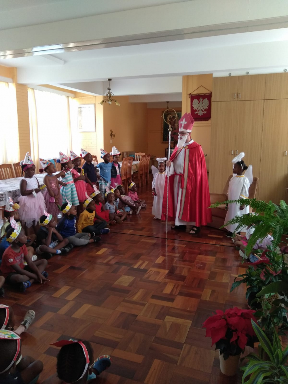 Oprócz prowadzenia parafii w Norwood w Johannesburgu nasz Współbrat, ks. Radosław Szymoniak SChr, posługuje Siostrom Służebniczkom Maryi Niepokalanej w tym mieście. Siostry prowadzą przedszkole, w którym odbyła się tradycyjna, radosna wizyta Świętego Mikołaja w przedszkolu prowadzonym przez siostry w Johannesburgu. Jak widać na załączonych fotografiach, pomimo pandemii, impreza się udała a dzieciaki z uśmiechem na twarzy i prezentami w ręku wróciły do domów.