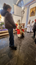 6 grudnia 2025 r. zawitał on do Domu Polskiego który gromadzi Polonię z tych miejscowości regionu, gdzie przy różnych zabawach i zajęciach plastycznych zgromadziło się 45 dzieciaków. Przybliżaliśmy sobie postać owego Świętego, który w swej hojności obdarzał wszystkich prezentami. Natomiast w niedzielę jeszcze raz Święty Mikołaj odwiedził nas w naszych świątyniach, aby razem z nami modlić się o świętość dla najmłodszych i nico starszych parafian.