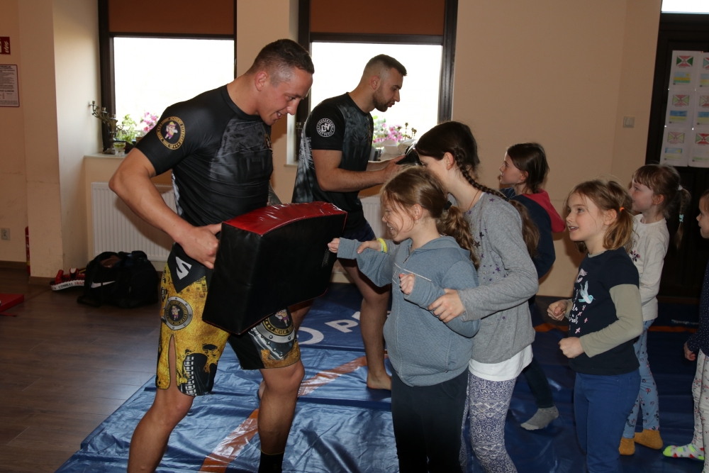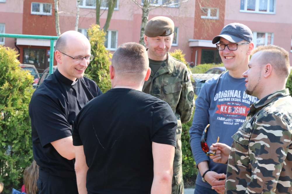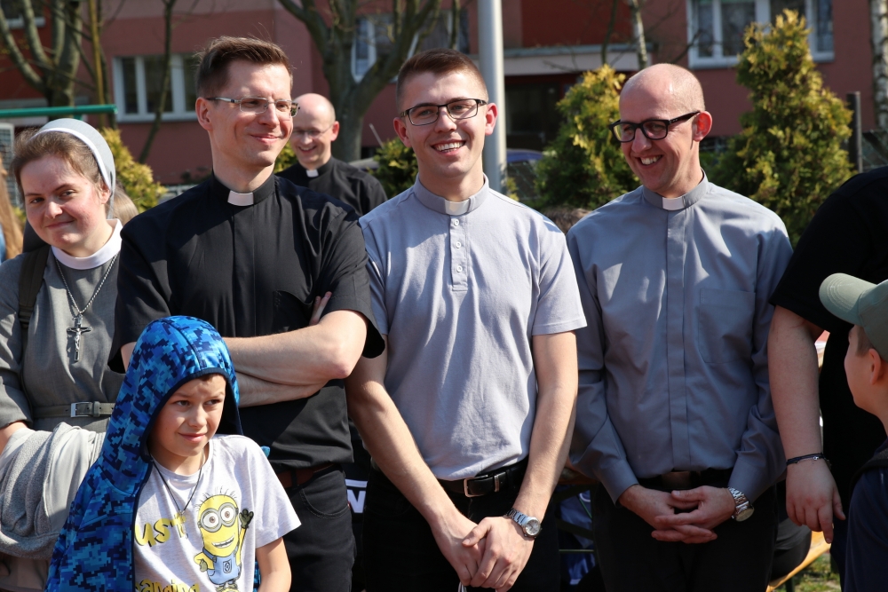 Po Mszy św. tradycyjnie już odbyły się różnorodne zajęcia warsztatowe dla dzieci. Młodzi ludzie mogli uczestniczyć w warsztatach kulinarnych, przygotowując pyszne kopytka oraz potrawy z jajek. Dzięki dk. Romanowi Melnykowi SChr poznali tajemnice Ukrainy, a ks. Krzysztof Wąchała SChr przybliżył im temat misji. Tegoroczne zajęcia artystyczne to: wykonanie palm, zawieszek na drzwi pokoju oraz wianuszków wielkanocnych – pod czujnym okiem florysty - kl. Pawła Hałgasa SChr. Były także zajęcia dla młodych chemików. Niezaprzeczalnie – już od lat – największą popularnością cieszyły się zajęcia sportowe prowadzone przez żołnierzy z V Pułku Inżynieryjnego w Szczecinie – Podjuchach pod dowództwem mjra Leszka Jabłka oraz – po raz pierwszy w historii­ – przez mistrza MMA Damiana Ostępa i Mateusza Kaczmarka. Oczywiście, na wytrwałych czekała przejażdżka jeepem oraz smakołyki.