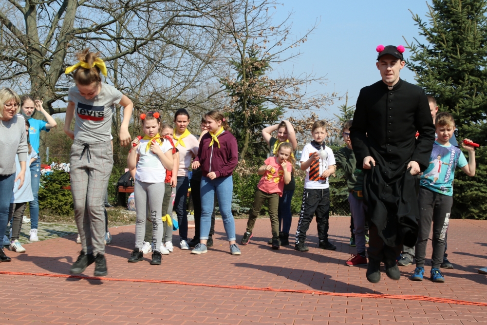Po zajęciach i obiedzie odbyła się sportowa rywalizacja międzyparafialna. Tym razem 10-osobowe zespoły musiały się zmierzyć z podskokami, przeskokami, pompkami, padami i innymi wymyślnymi formami aktywności. Zwyciężyła drużyna z parafii Serca Jezusowego, drugie miejsce zajęły Pyrzyce, a trzecie – drużyna z Dobrzan. Na koniec wszyscy uczestnicy odśpiewali Koronkę do Bożego Miłosierdzia.