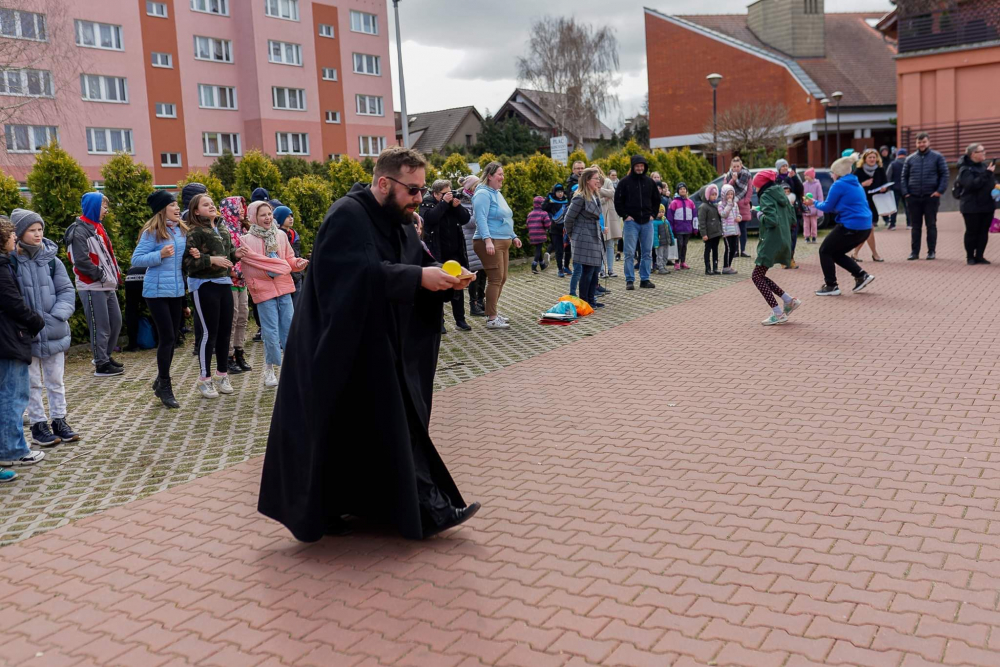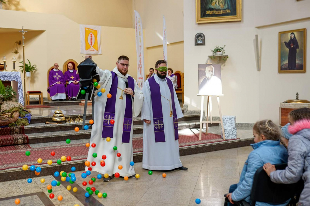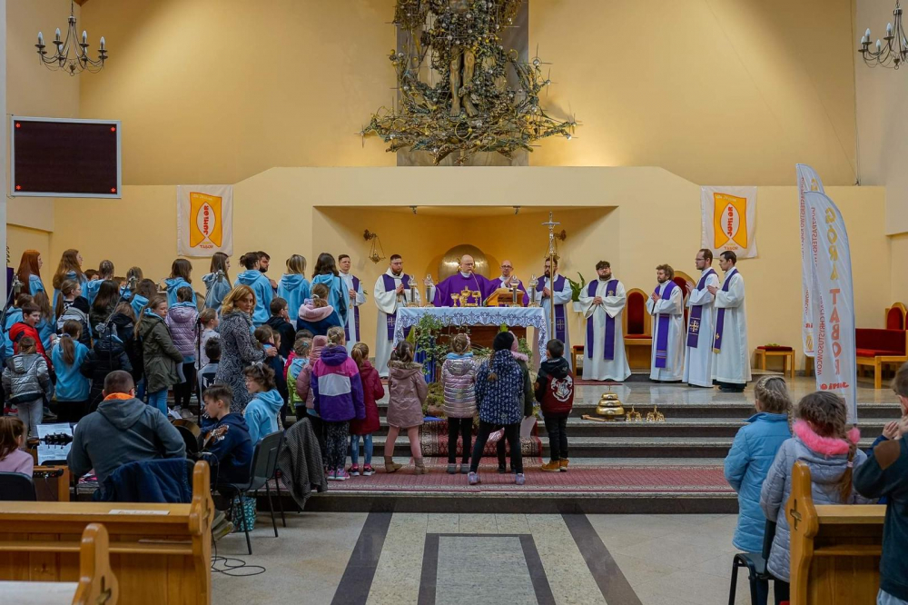 Spotkanie rozpoczęła Msza Święta, której przewodniczył ks. Dariusz Pazdan SChr, a kazanie wygłosił ks. Maksymilian Ślusarczyk SChr. Na początku przywitał wszystkich proboszcz parafii ks. Krzysztof Antoń SChr, wyrażając radość, że po dwóch latach znów dzieci z parafii chrystusowców mogły się spotkać na wspólnej modlitwie i zabawie.