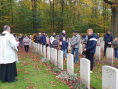 W godzinach popołudniowych w Uroczystość Wszystkich Świętych odbyło się na cmentarzu wojskowym w Kleve nabożeństwo za zmarłych, w którym uczestniczyła tamtejsza Polonia z posługującymi pośród niej ks. Marcinem Dereszkiewiczem SChr i s. Justyną Chomką MChR. Modlitwą ogarnialiśmy zmarłych polskich emigrantów, naszych bliskich zmarłych, których mogiły znajdują się w Polsce, jak również tych, którzy spoczywają na tym cmentarzu. W nabożeństwie poza licznie zgromadzonymi parafianami wzięli udział oficerowie Sił Powietrznych Wojska Polskiego z gen. bryg. pilotem Sławomirem Żakowskim na czele. Przed rozpoczęciem nabożeństwa chwilą ciszy został złożony honor spoczywającym tu polskim lotnikom z czasu II wojny światowej. Następnie uczestniczący odmawiali różaniec nad grobami poległych żołnierzy. Dzieci i młodzież, chcąc zaznaczyć polskie pochodzenie zmarłych żołnierzy, przy każdym grobie stawiały znicze i wbijały biało-czerwone chorągiewki. Na koniec oficerowie wręczyli dzieciom wojskowe upominki, które sprawiły najmłodszym wiele radości.