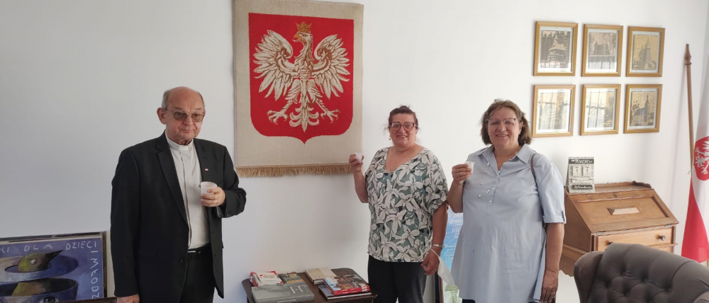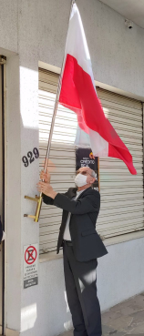 Bezpośrednio po liturgii udaliśmy się na drugą stronę alei, gdzie w budynku biurowym mieści się Konsulat Honorowy RP. Przed budynkiem Konsulatu Sergio Sechinski – pełniący misję Konsula Honorowego Rzeczypospolitej Polskiej w stanie Rio Grande do Sul skierował do zebranych słowa płynące z polonijnego serca, w których zachęcał, abyśmy pielęgnowali dumę z naszego pochodzenia i zachowywali wartości, jakie przywieźli ze sobą z dalekiej Polski nasi przodkowie. Kolejne generacje emigracyjne w drugim, trzeci, czy piątym pokoleniu żyjące w stolicy i na terenie tego bogatego stanu i trochę mniejszego terytorialnie od Polski, potrafiły pielęgnować i przekazywać nowym spadkobiercom bogactwo naszych tradycji i przejawów kulturowych. Po przemówieniu, Konsul poprosił duszpasterza, aby umieścił polską flagę na specjalnym miejscu przy wejściu do budynku. Z kolei odśpiewaliśmy nasz hymn narodowy! Ukoronowaniem modlitewno-patriotycznej celebracji było spotkanie w siedzibie Konsulatu, gdzie konsul Sergio podjął nas tradycyjną małą, czarną i aromatyczną brazylijską kawą i biszkoptami. Przy kawie mieliśmy okazję do wspólnej przyjacielskiej rozmowy, jak też przedstawić sugestie do uroczystego świętowania Niepodległości Polski z udziałem Ambasadora Najjaśniejszej dra Jakuba Skiby, który będzie składał wizytę oficjalną w stanie Rio Grande do Sul w dniach od 18 do 21 listopada.