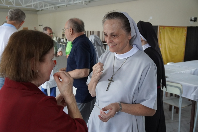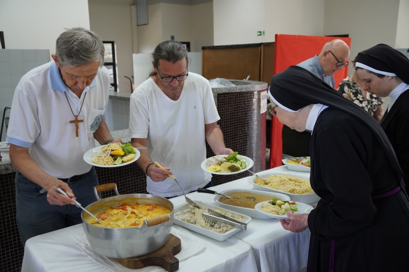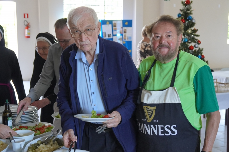 Staramy się ten testament nieustannie wypełniać, a jedną z form realizacji są braterskie spotkania wspólnotowe i te organizowane podczas wakacji w domach w Poznaniu i Puszczykowie, i te podczas comiesięcznych dni skupienia oraz dorocznych rekolekcji. Z pewnością czynią temu zadość również zjazdy duszpasterzy polonijnych danego kraju bądź regionu… Zatem do takich spotkań pozwalających zachować jedność we wspólnocie (również w tej szerszej, bo polonijnej) trzeba zaliczyć doroczne spotkania opłatkowe organizowane w Kurytybie dla duszpasterzy polonijnych posługujących w mieście i okolicy. Jak zaznacza ich organizator, ks. Kazimierz Długosz SChr, w przeszłości były one bardziej liczne (wszak posługiwało więcej sióstr zakonnych i kapłanów z Polski, którzy bądź powrócili do ojczyzny, bądź odeszli do wieczności na czele z naszym Współbratem, inicjatorem tychże spotkań śp. ks. Benedyktem Grzymkowskim SChr, długoletnim rektorem PMK w Brazylii). Na tegoroczne przybyło 8 kapłanów i 5 sióstr zakonnych, którzy najpierw wspólnie się modlili, uczestnicząc w Eucharystii z konferencją, by potem złożyć sobie świąteczne życzenia i zasiąść do wigilijnego stołu, na którym znalazły się też tradycyjne polskie potrawy.