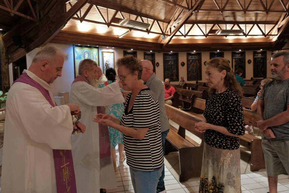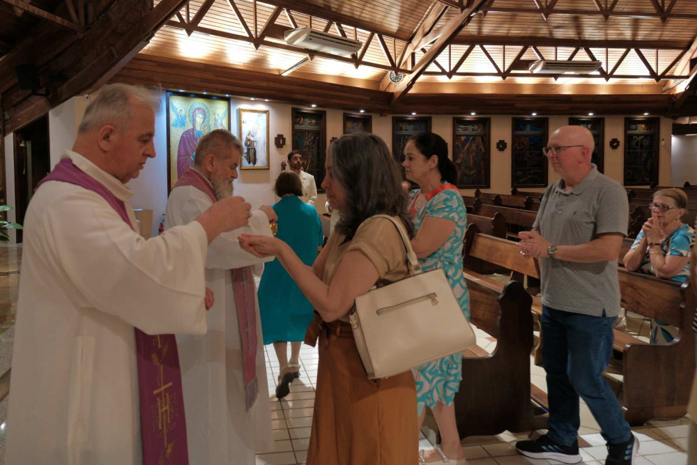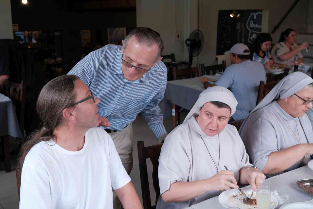 W kurytybskim spotkaniu, które odbyło się 6 marca 2025 r., uczestniczyło 20 misjonarzy z różnych rodzin zakonnych oraz diecezji. Nasze Towarzystwo Chrystusowe reprezentowane było przez siedmiu księży. Należy podkreślić obecność sióstr zakonnych: ze Zgromadzenia Sióstr Misjonarek Chrystusa Króla, Zgromadzenia Sióstr Franciszkanek Rodziny Marii oraz ze Zgromadzenia Sióstr Świętego Józefa. Przybył również pan Oskar Płonka, który realizuje programy o brazylijskiej Polonii ukazujące się regularnie na antenie TVP Polonia. A wspólny zjazd stał się doskonałą okazją do przeprowadzenia wywiadu z Księdzem Biskupem oraz obecnymi misjonarzami.
