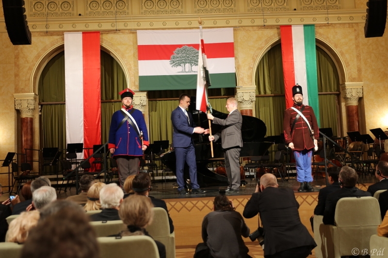 Po Mszy św. w peszteńskim Vigadó odbyły się oficjalne uroczystości, podczas których wystąpił prezydent RP Andrzej Duda i prezydent Węgier János Áder. Prezydent A. Duda zaznaczył, że ten rok jest szczególnym rokiem polsko-węgierskiej solidarności ze względu na 60 rocznicę wydarzeń czerwcowych w Polsce i październikowych na Węgrzech. Te wydarzenia pokazały, że nie władza, ale narody polskie i węgierskie nie godzą się na zniewolenie i nie godzą się aby siłą odebrać im te wartości w których się wychowali i w których żyli od pokoleń. Wydarzenia te były świadectwem, że oba narody potrafiły się przeciwstawić systemowi, który został nam narzucony, który pozbawiał nas tradycji na której opierała się tożsamość obu narodów. Po przemówieniach prezydentów, członkowie Polsko-Węgierskiej grupy rekonstrukcyjnej Legionu J. Wysockiego wnieśli flagę Dnia Polsko-Węgierskiej Przyjaźni, którą nadburmistrz Budapesztu przekazał prezydentowi Piotrkowa Trybunalskiego, miasta, które w przyszłym roku będzie organizatorem Dnia Przyjaźni.  Następnie odbył się świąteczny koncert w wykonaniu pianisty Gergelya Bogányiego i Orkiestry Danubia z Óbudy.