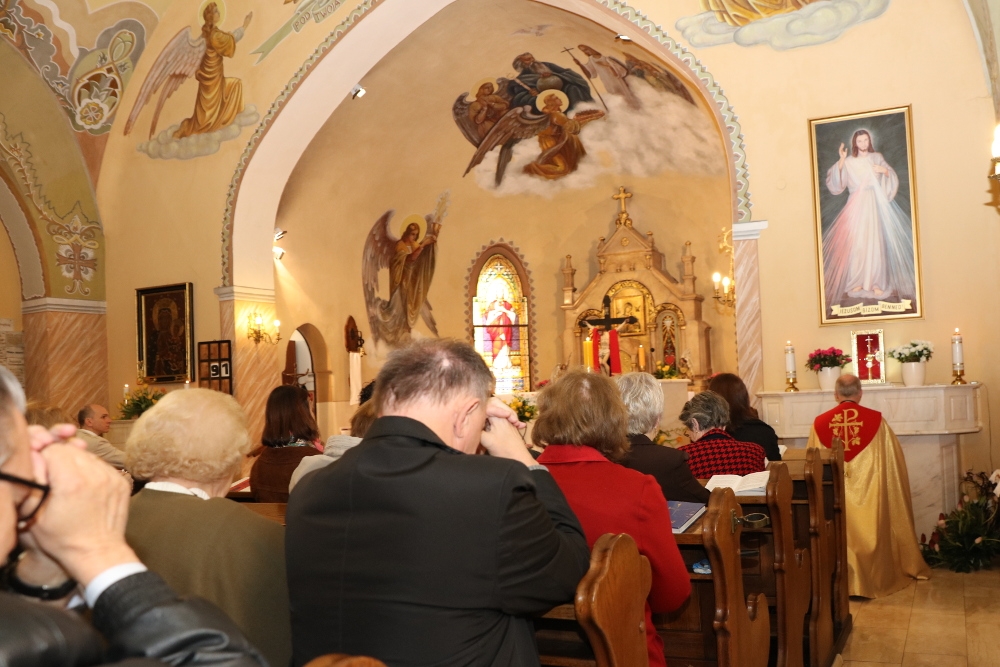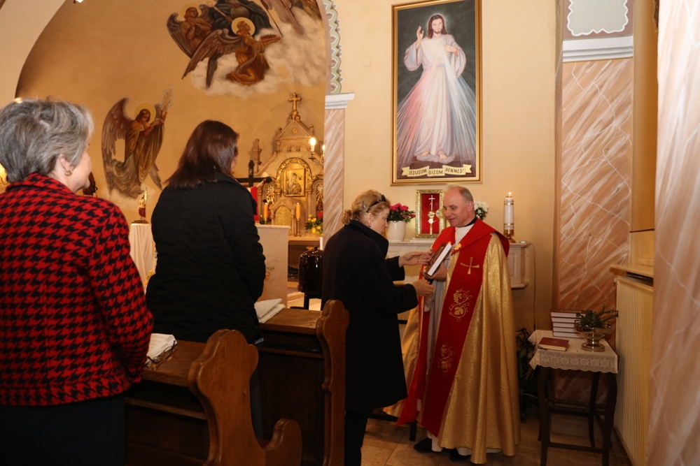 W Kościele katolickim od 2000 roku niedziela ta jest obchodzona jako Niedziela Miłosierdzia Bożego, jest to święto ustanowione przez św. Jana Pawła II. Przed Mszą św. w Kościele Polskim odmówiliśmy koronkę do Miłosierdzia Bożego, modląc się za nasze rodziny i narody: polski i węgierski, a następnie Mszę św. sprawował proboszcz ks. Krzysztof Grzelak TChr  wraz z ks. Ireneuszem Kopaczem. Ponieważ 2 kwietnia minęła 11. rocznica śmierci Jana Pawła II, więc na Mszy św. podzieliła się z nami wspomnieniami pani Danuta Rybicka jako naoczny świadek życia i świętości naszego Wielkiego Rodaka.