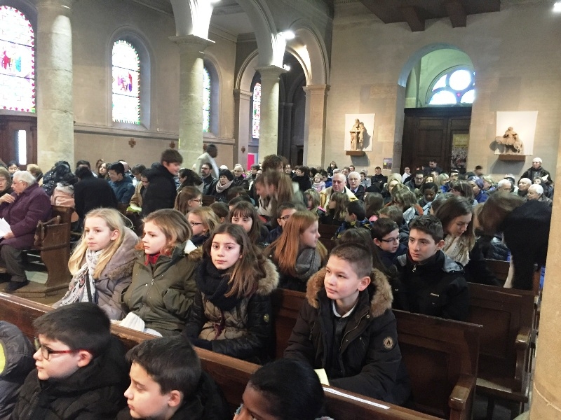 Liturgię ubogacił aktywny udział parafian i przedstawicieli wspólnot, przez śpiew, czytania, modlitwę wiernych, procesję z darami. W imieniu wspólnoty polskiej pierwsze czytanie odczytała Beata Knop, wezwanie modlitwy wiernych w intencji młodocianych migrantów Ewelina Rucyk a dar w procesji poniosła Beata Piątkowska. W procesji z darami przejmującym gestem było symboliczne przyniesienie i przekazanie przez dzieci statku, z pamięcią o tych wszystkich migrantach, którzy przez morze usiłują dotrzeć do Europy i często w nim tracą życie. W ich intencji modlił się w memento za zmarłych modlitwy eucharystycznej ks. Marcel Luedi. Po okolicznościowym błogosławieństwie i zakończeniu Mszy św. , obecni przeszli do pobliskiej sali parafialnej na apéritif przygotowany przez parafian i wspólny obiad. Następnie chętni obejrzeli film: świadectwa dzieci migrantów pt. „Les enfants migrants – Les enfants d’abord”.