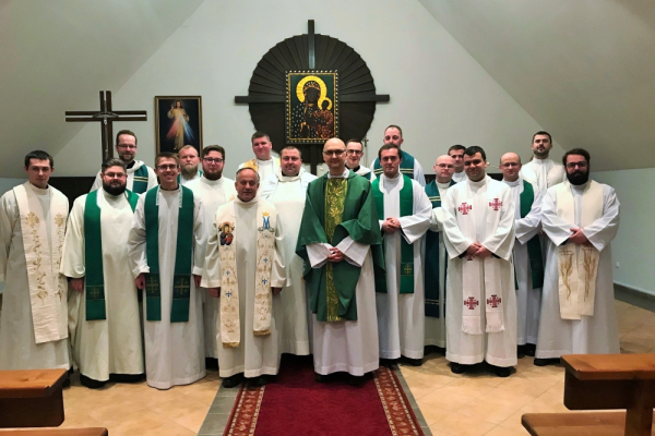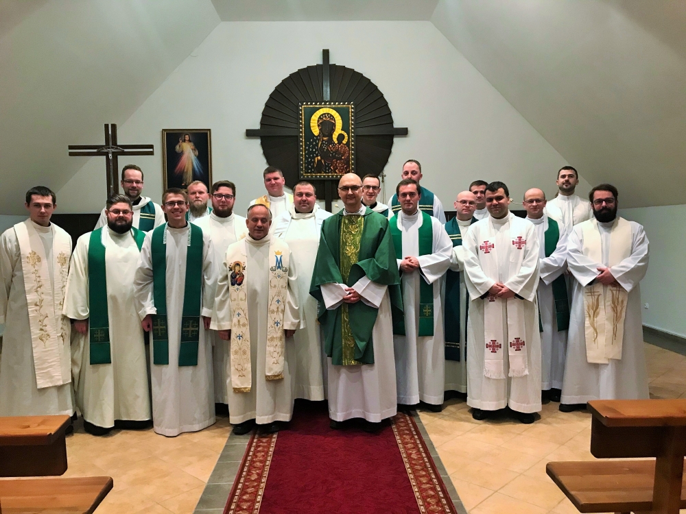Księża Wikariusze posługujący w Polsce i na Białorusi swoje coroczne rekolekcje zakonne przeżywają w Domu Rekolekcyjno-Pielgrzymkowym chrystusowców w Częstochowie. Rozpoczęły się one w poniedziałek 27 stycznia i będą trwały do końca tygodnia. Nauki rekolekcyjne w temacie: „Żyć życiem Twoim, Panie” głosi o. dr hab. Ignacy Kosmana OFMConv., wykładowca homiletyki w Wyższym Seminarium Duchownym Towarzystwa Chrystusowego w Poznaniu. Wspólnotę odwiedził przełożony generalny ks. Krzysztof Olejnik SChr a także wikariusz generalny ks. Bogusław Burgat SChr. W programie ćwiczeń duchowych nie mogło zabraknąć oczywiście spotkania z Panią Jasnogórską, w kaplicy której współbracia sprawowali wraz z przełożonymi Najświętszą Ofiarę.