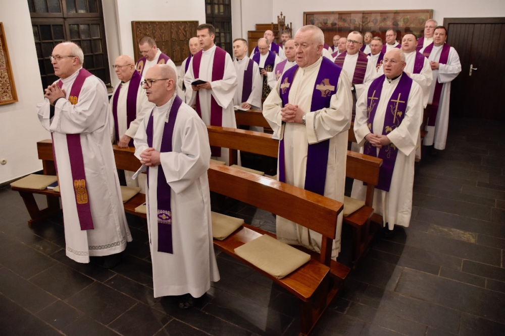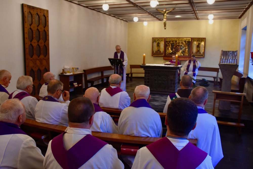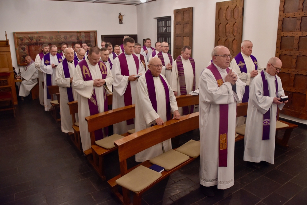 Duchowe ćwiczenia poprowadził o. Klaudiusz Michalski OFM – gwardian, proboszcz Parafii pw. św. Józefa Oblubieńca NMP we Wschowie i kustosz tamtejszego Sanktuarium Matki Bożej Wschowskiej – Pani Pocieszenia. W rekolekcyjnych naukach przypomniał zgromadzonym kapłanom zawarte w pierwszym rozdziale Listu do Efezjan wezwanie do świętości i wskazał cechy drogi, prowadzącej do niej w dzisiejszym świecie. Dni spędzone w tym Sanktuarium upłynęły na osobistej medytacji, wspólnotowej modlitwie i braterskich spotkaniach umacniających jedność zakonnego życia.